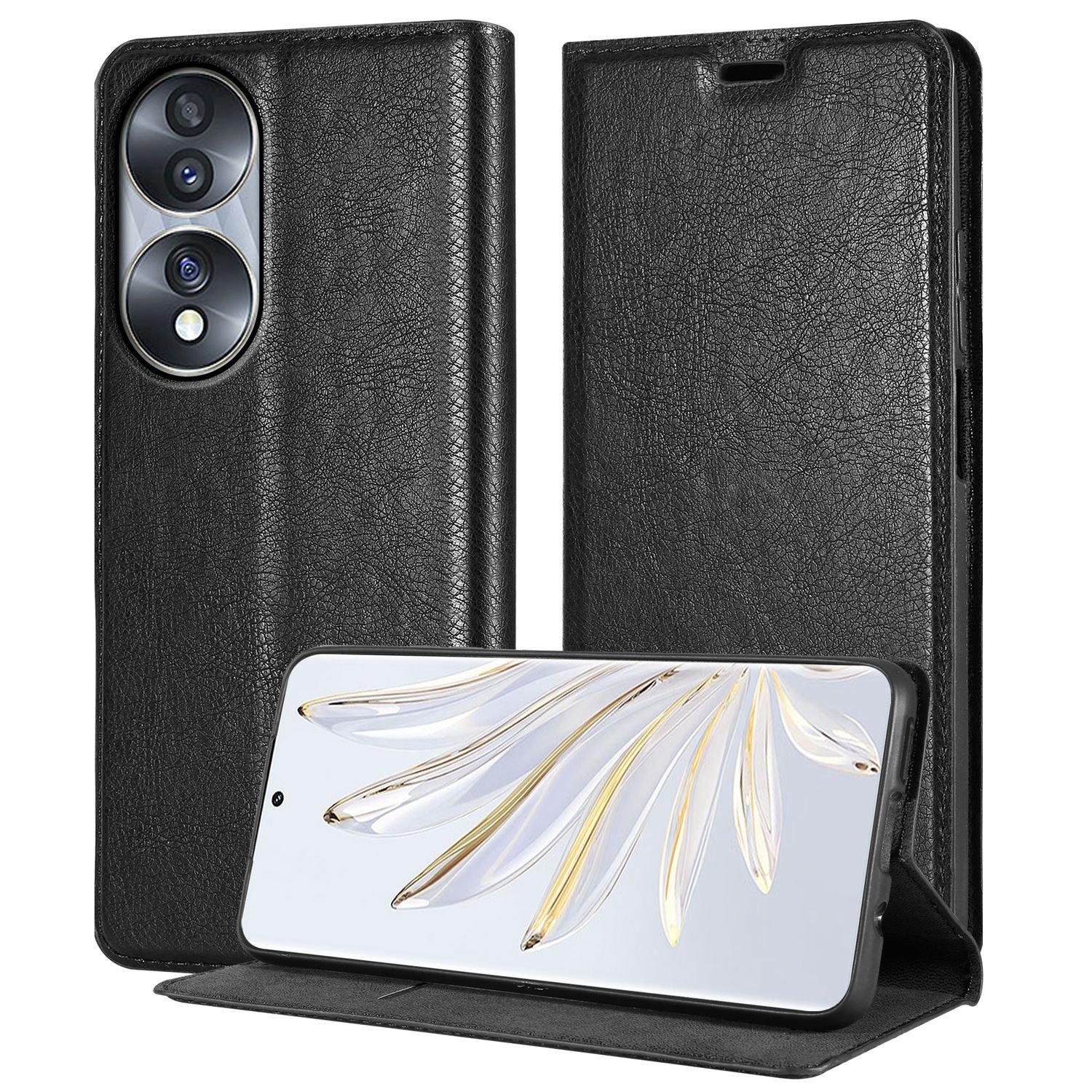 Cadorabo Hülle für Honor 70 in NACHT SCHWARZ - Schutzhülle mit Magnetverschluss, Standfunktion und Kartenfach