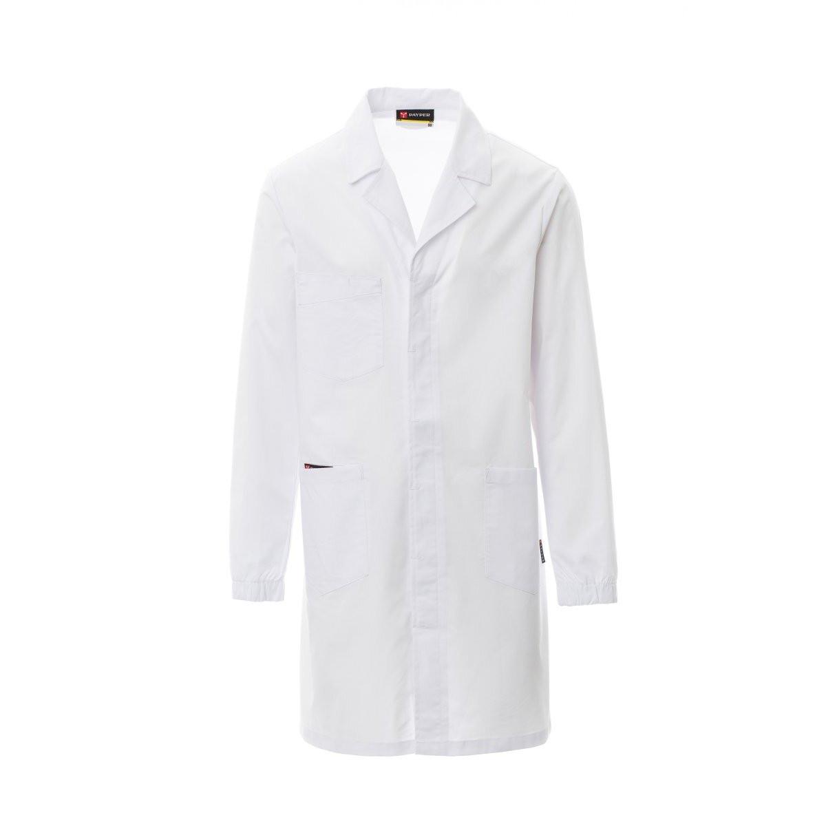 Dieser Laborkittel ist für professionelle Umgebungen konzipiert und bietet ein klassisches und funktionales Design. Er verfügt über einen Reverskragen und einen Knopfverschluss für einen sicheren Sitz. Der Kittel enthält mehrere Taschen zur praktischen Aufbewahrung von Werkzeugen und persönlichen Gegenständen und eignet sich daher für verschiedene Labor- oder medizinische Umgebungen.
