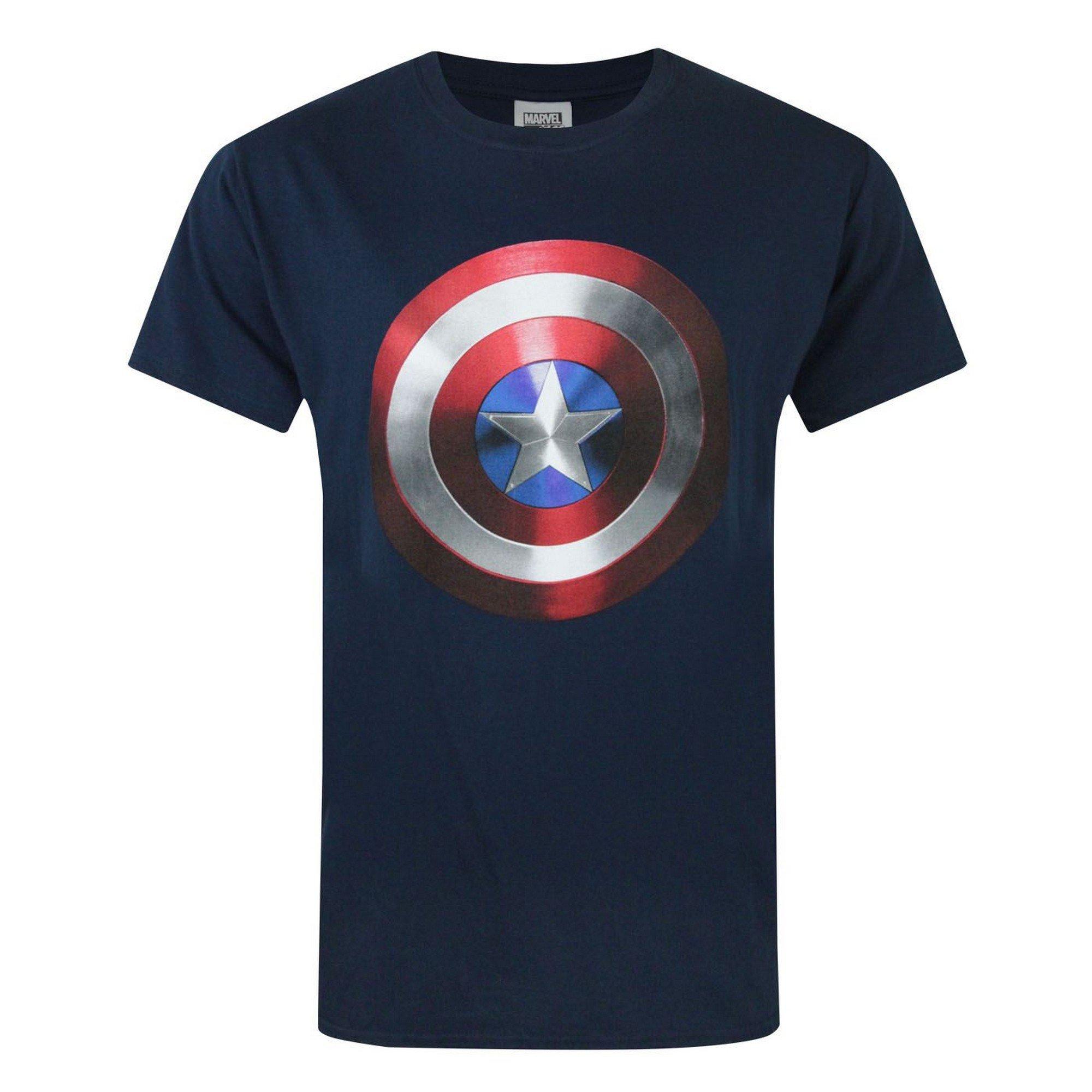 Dieses T-Shirt zeigt den offiziellen Captain America Film-Schild-Print auf der Vorderseite. Das ikonische Captain America Schild ist in klassischen Farben mit einem stilvollen reflektierenden Effekt und einem starken Finish dargestellt. Es hat einen runden Halsausschnitt und kurze Ärmel.