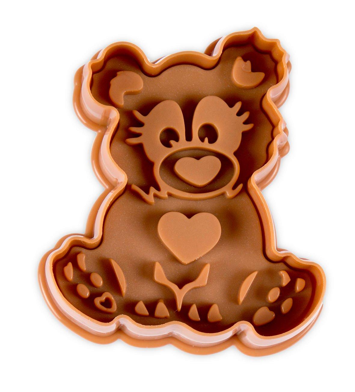 Die robusten Ausstecher mit Auswerfer ermöglichen das Herstellen von leckeren Guetzli mit tollen Prägungen. Die Ausstecher sind auch perfekt für einen Backnachmittag mit Kindern geeignet. Mit dem Auswerfer wird das Muster auf die Guetzli gebracht und anschliessend können diese ganz einfach vom Ausstecher gelöst werden. Zudem erleichtert die Prägung das spätere Verzieren. Produktionsland : Deutschland Material : Kunststoff Grösse : Länge: 6 cm / Breite: 5.5 cm / Höhe: 4.5 cm Farbe(n) : Braun Pflegehinweise : Spülmaschinengeeignet Geeignet für : Plätzchen, Kekse, Guetzli, Fondant, Marzipan, Modellierschokolade