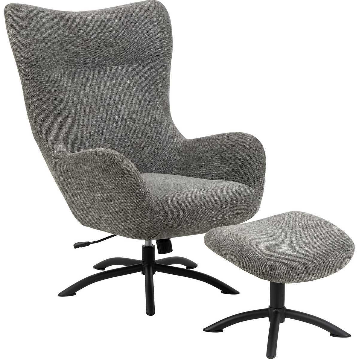 Relaxsessel mit Hocker aus Metall, Stoff, Farbe anthrazit, schwarz, 76x86x105 cm.hohe Rückenlehne für mehr Komfortmit Kippfunktionangenehmer, weicher Komfort durch Qualitätsschaum und weichen Stoffmit klassischem, skandinavischem Lookmax. Belastbarkeit - Hauptoberfläche: 110 kgBodenschutz: Plastik FusskappenBeinhöhe: 21 cm