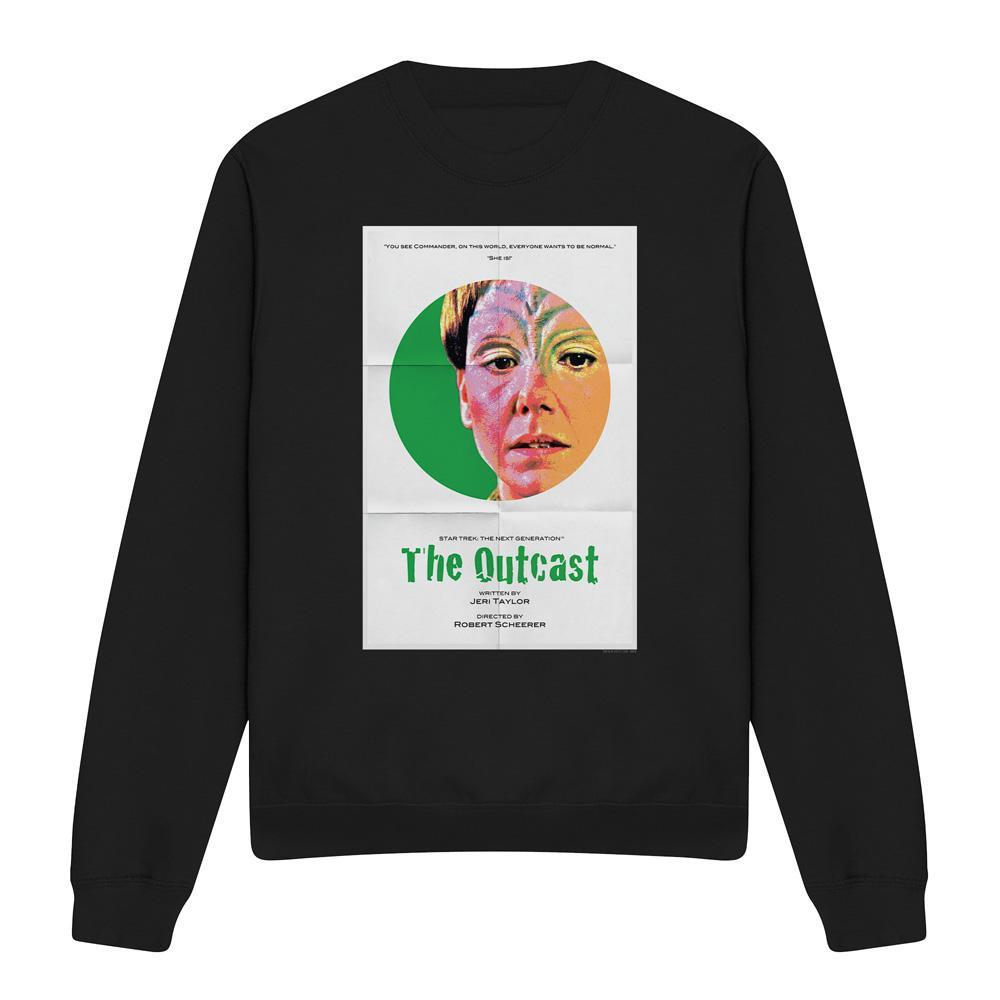 Dieses Sweatshirt zeigt einen grafischen Druck, inspiriert von "The Outcast", Staffel 5 Episode 17 von Star Trek: The Next Generation. Das Design präsentiert ein Charakterporträt mit einem Zitat aus der Episode und ist somit ein unverwechselbares Stück für Fans.