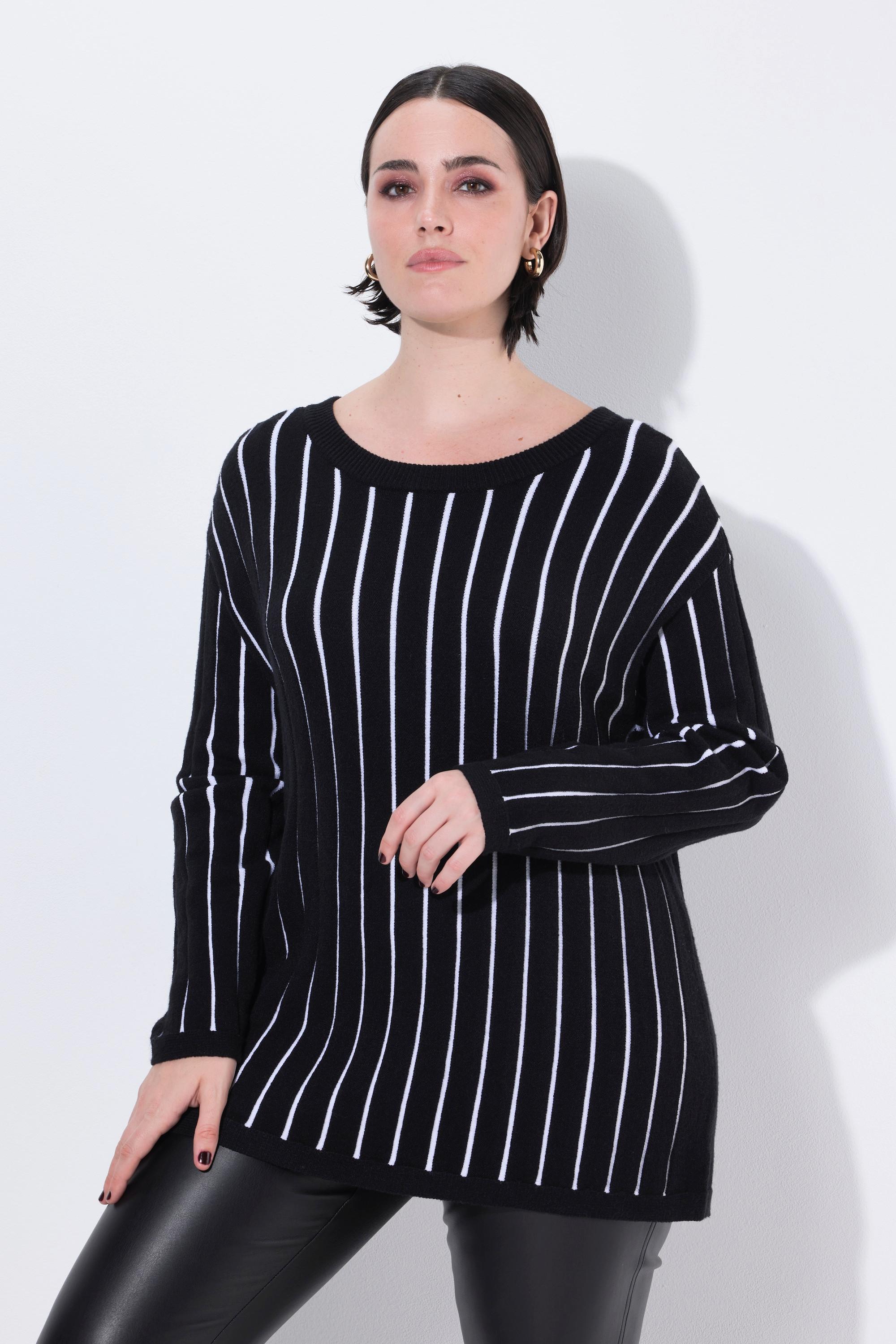 Ulla Popken Pullover Längsstreifen Slim Fit Langarm
