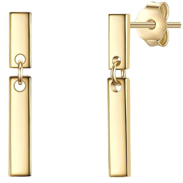 Ohrringe in minimalistisch-geometrischen Formen sind das It-Piece der Saison und aus modernen Schmuckschatullen nicht mehr wegzudenken: Diese Ohrstecker des Labels Glanzstücke München interpretieren den Trend als bezaubernden zweiteiligen Barren. Filigran und beweglich werden sie zum Hingucker am Ohrläppchen. Die Stecker sind aus 925er Sterling Silber gefertigt und erhalten durch eine Gelbvergoldung einen warmen Glanz. Der praktische Steckverschluss ermöglicht das schnelle An- und Ablegen für einen exzellenten Tragekomfort. Ein wundervolles Accessoire in Juweliersqualität für alle Frauen, die Geoschmuck in der klassischen Edelmetall-Nuance mögen!