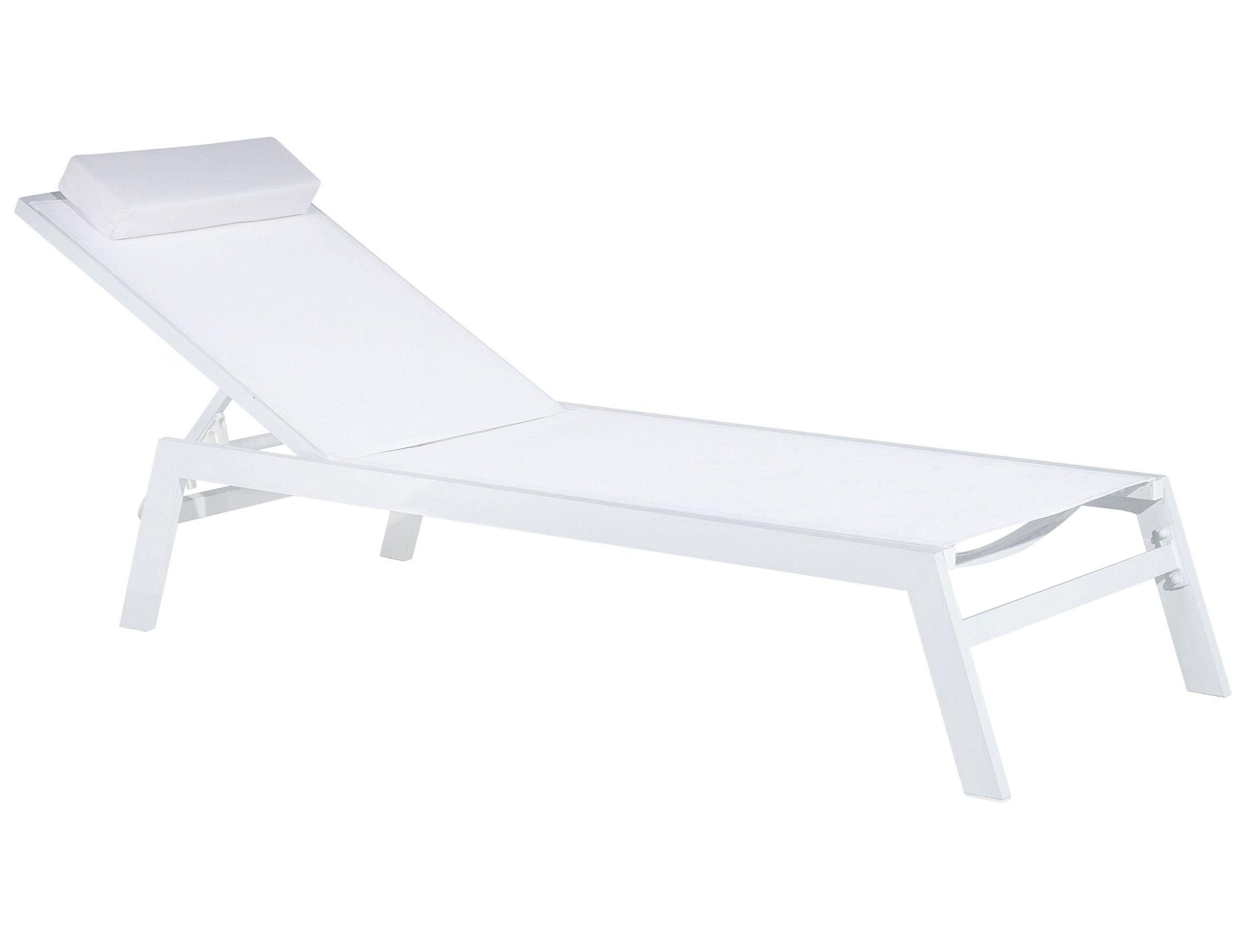 Urlaubsfeeling auf einer weissen Gartenliege aus Aluminium. Diese Sonnenliege ist aus einem robusten, hochwertigem Aluminiumgestell und einer strapazierfähigen Liegefläche aus weissem, atmungsaktivem Mesh gefertigt. Die Rückenlehne ist 6-fach verstellbar und bietet somit grössten Komfort. Das abnehmbare, bequem gepolsterte Kissen dient als Kopfstütze. Dank des hochwertigen Materials und der ausgezeichneten Qualität ist die herrlich komfortable Sonnenliege robust, extrem witterungsbeständig und äusserst pflegeleicht.