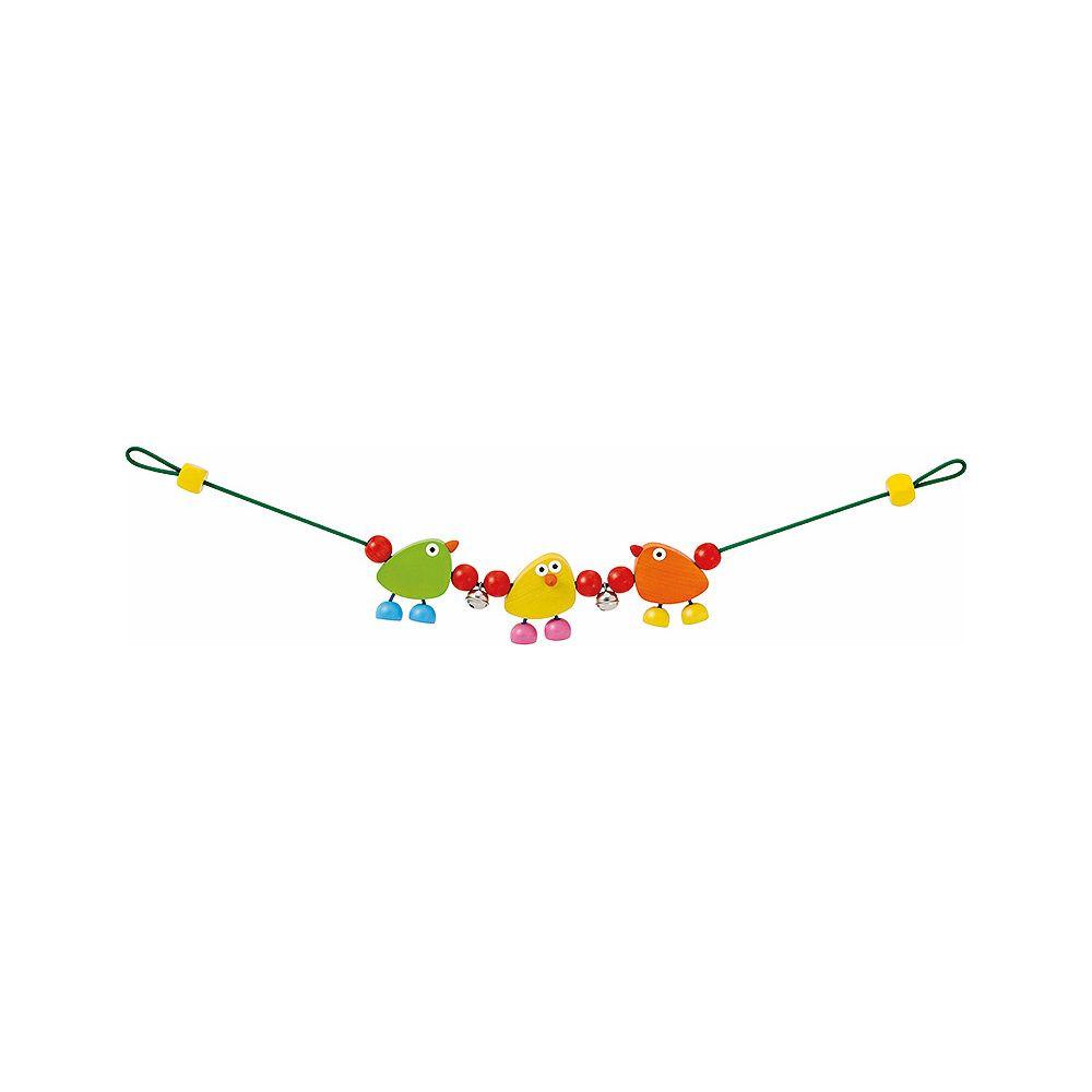 Diese farbenfrohe Wagenkette verleiht jedem Kinderwagen das besondere Etwas. Mit einer Länge von 63 cm sorgt sie für farbenfrohe Unterhaltung, während die drei fröhlichen Piepmätze bei jeder Bewegung des Kinderwagens ansprechend wackeln und Glöckchen läuten. Die kreative Gestaltung fördert die Sinne Ihres Kindes.