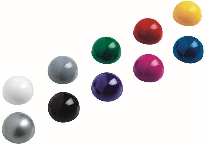 Kugel-Magnet Ø 30 mm Diese Kugel-Magnete sind formvollendet durch eine polierte Halbkugel mit einer Hochglanz-Oberfläche. Ideal für designorientiertes Präsentieren: in repräsentativen Räumen, Agenturen, oder Museen. Für elegantes Unterstreichen der Corporate Identity-Farben oder um bewusste Farb-Akzente zu setzen. Die Unterseite der Ferrit-Magnete ist zum Schutz der magnethaftenden Oberfläche lackiert. Made in Germany Angenehme Haptik Stabil: Gehäuse aus bruchsicherem Kunststoff Nichts geht verloren: Auf praktischer Blechtafel mit Eurolochung zum Aufhängen