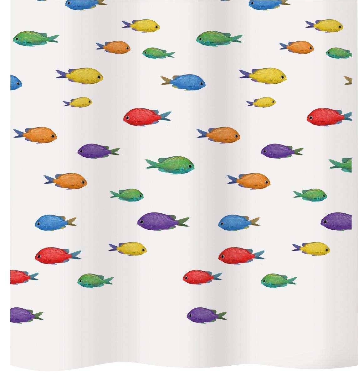 diaqua® Duschvorhang Textil Aquatic 120 X 200 CM - Textil-Duschvorhang in verspielt farbenfrohem Design, aus hochwertigem, wasserabweisendem Polyestergewebe. Durch das eingearbeitete Beschwerungsband aus Polypropylen (Blei-frei) fällt der Vorhang schön, ohne zu verwehen. Der Duschvorhang ist mit 8 Ösen versehen, die für handelsübliche Duschvorhangringe oder auch Duschvorhangschienen geeignet sind. Die Grösse von 120x200 cm ist ideal geeignet für den Einsatz in der Duschwanne.