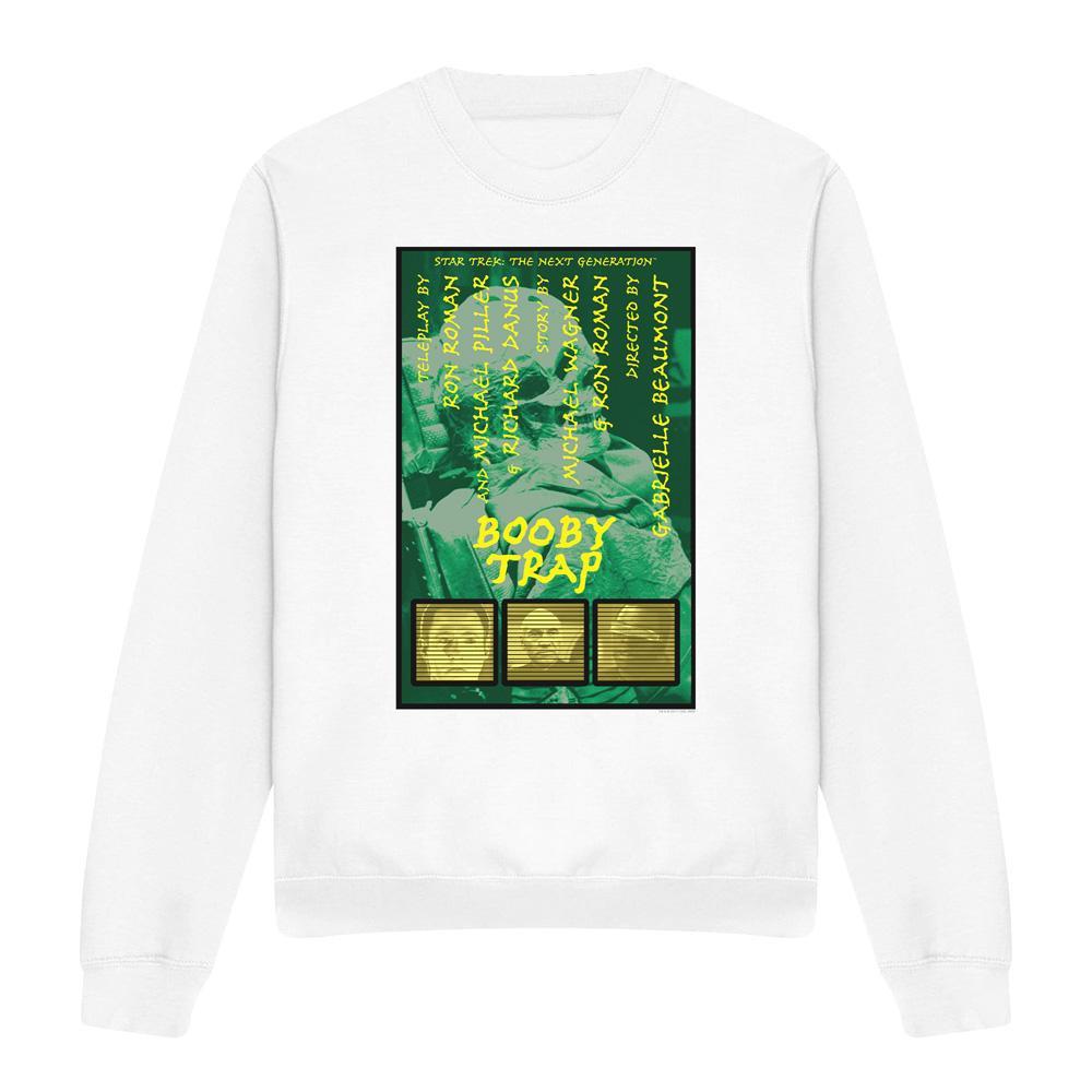 Dieses Sweatshirt zeigt einen Grafikdruck, der von "Star Trek: The Next Generation" Staffel 3, Episode 6, mit dem Titel "Booby Trap" inspiriert ist. Das Design fängt die Essenz der Episode mit einer einzigartigen visuellen Darstellung der Credits und thematischen Elemente ein.