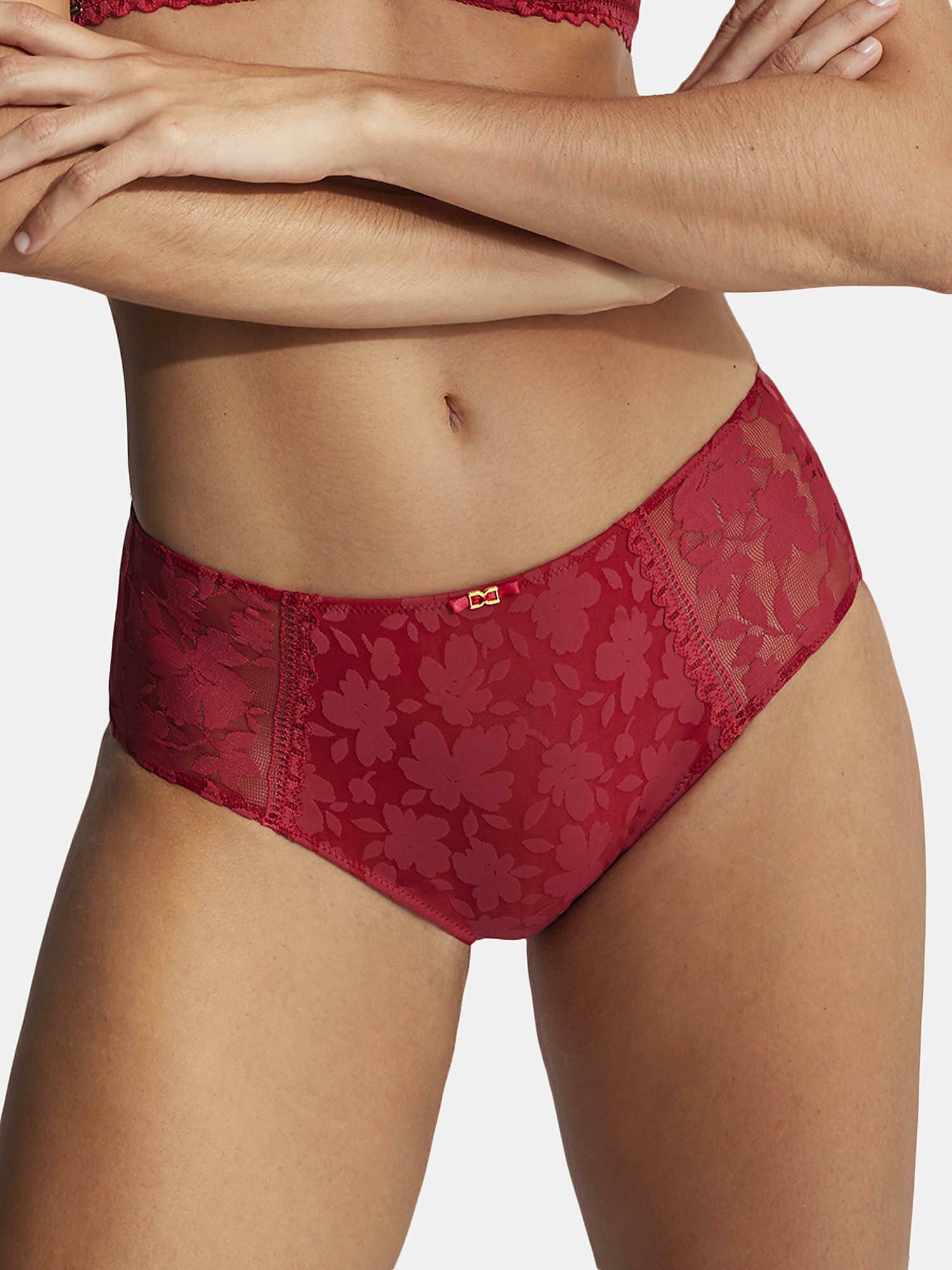 Dieser hochgeschnittene Slip aus der Gabrielle-Kollektion bietet einen klassischen Schnitt, der Komfort und Alltagstauglichkeit gewährleistet. Die hohe Taille stützt den Bauch sanft, während zarte Spitzendetails und ein kleines Schmuckstück auf der Vorderseite einen romantischen Akzent setzen. Ein Baumwollzwickel sorgt für intimen Komfort, und ein kleines Logo befindet sich auf der Rückseite. Dieses Kleidungsstück verspricht besondere Momente und verleiht einen Hauch von Geheimnis und Verführung, der die Weiblichkeit in ihre raffinierteste und fesselndste Form verwandelt.