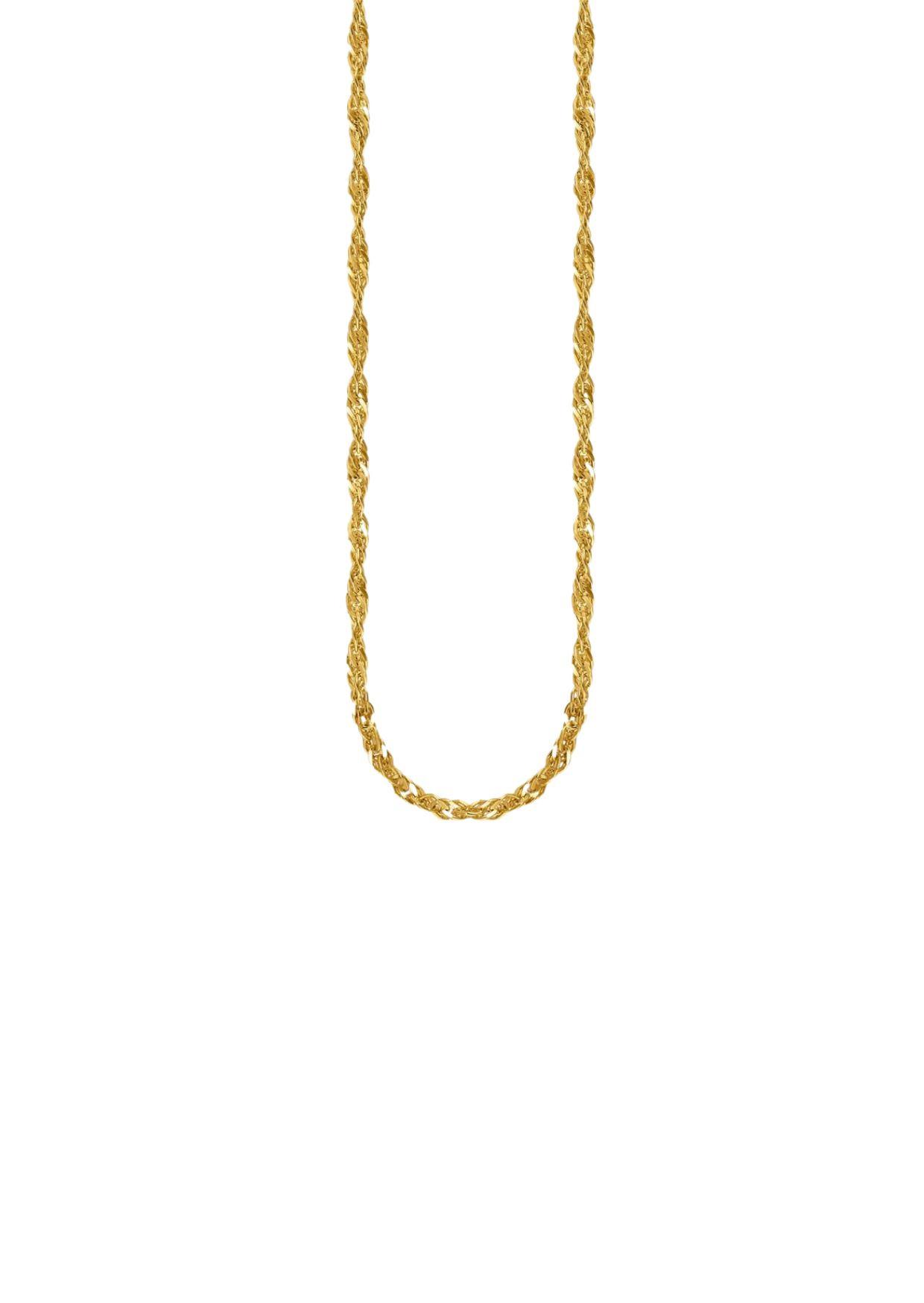 Ob du ihn solo trägst oder mit deinem Lieblingsanhänger kombinierst diese vergoldete Singapur-Halskette ist ein echter Blickfang. Sie besteht aus recyceltem Silber mit 18k-Vergoldung und besticht durch ihr einzigartiges Design mit markant ineinander verschlungenen Kettengliedern. Dank der drei Ösen lässt sich die Länge der Kette auf 40, 42,5 und 45 cm einstellen.