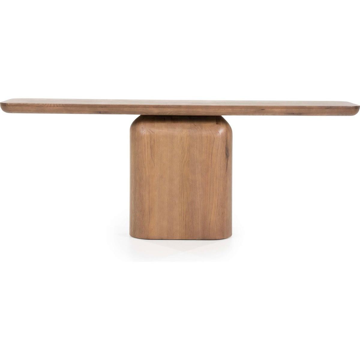 Der Konsolentisch Leon in Braun vereint Eleganz und Funktionalität und ist die ideale Ergänzung für jedes moderne Zuhause. Mit einer Länge von 200 cm, einer Breite von 45 cm und einer Höhe von 80 cm bietet er ausreichend Platz für Dekorationen oder alltägliche Gegenstände. Die Tischplatte aus MDF mit hochwertigem Eichenfurnier ist 6 cm dick und verleiht dem Tisch ein robustes Erscheinungsbild. Das Untergestell aus massivem Eichenholz misst 60 x 25 cm und sorgt für Stabilität und Langlebigkeit. Der Konsolentisch Leon passt sich durch sein zeitloses Design perfekt in jeden Wohnstil ein und ist ein echter Blickfang.