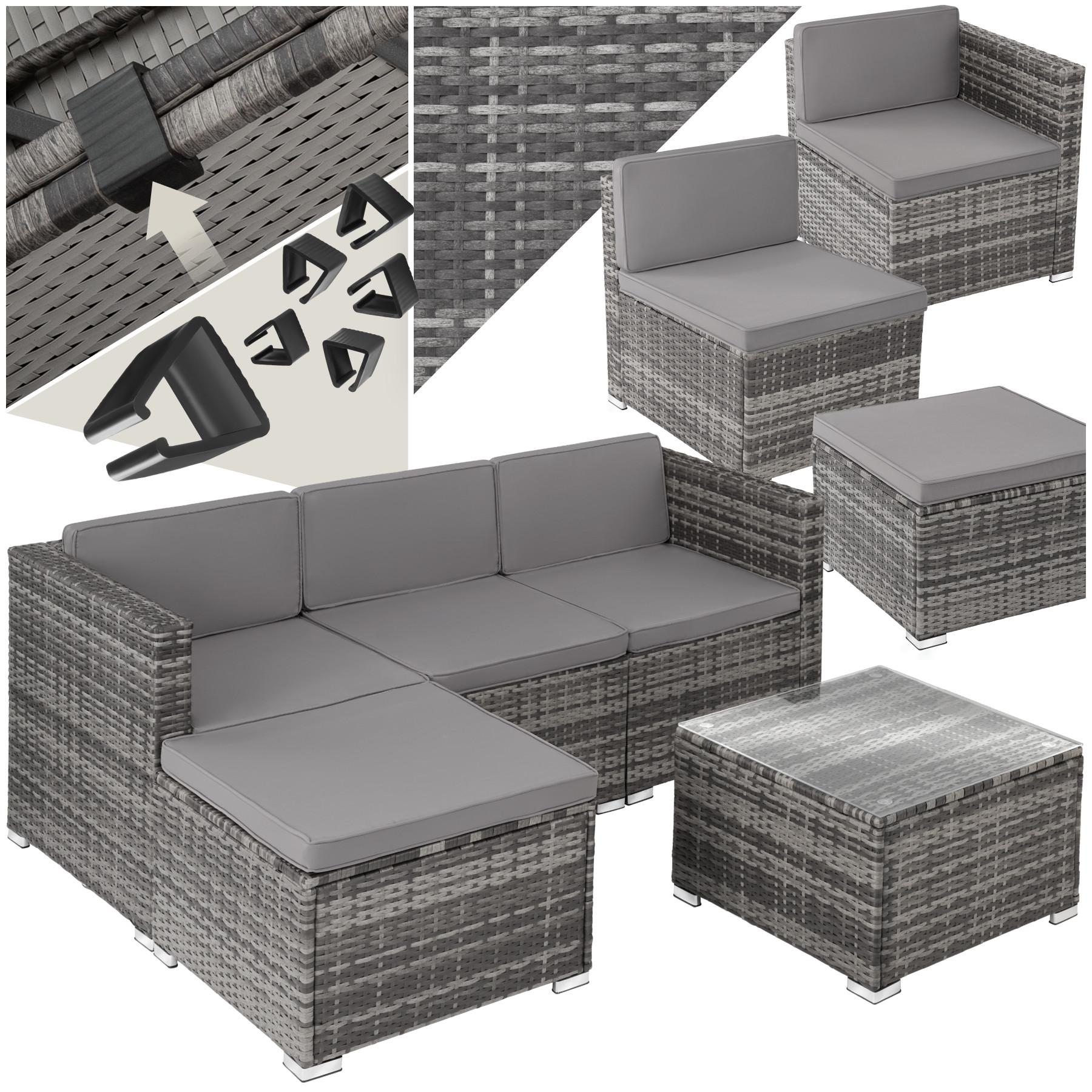 - Frei zu gruppierende Rattan-Lounge aus fünf Teilen