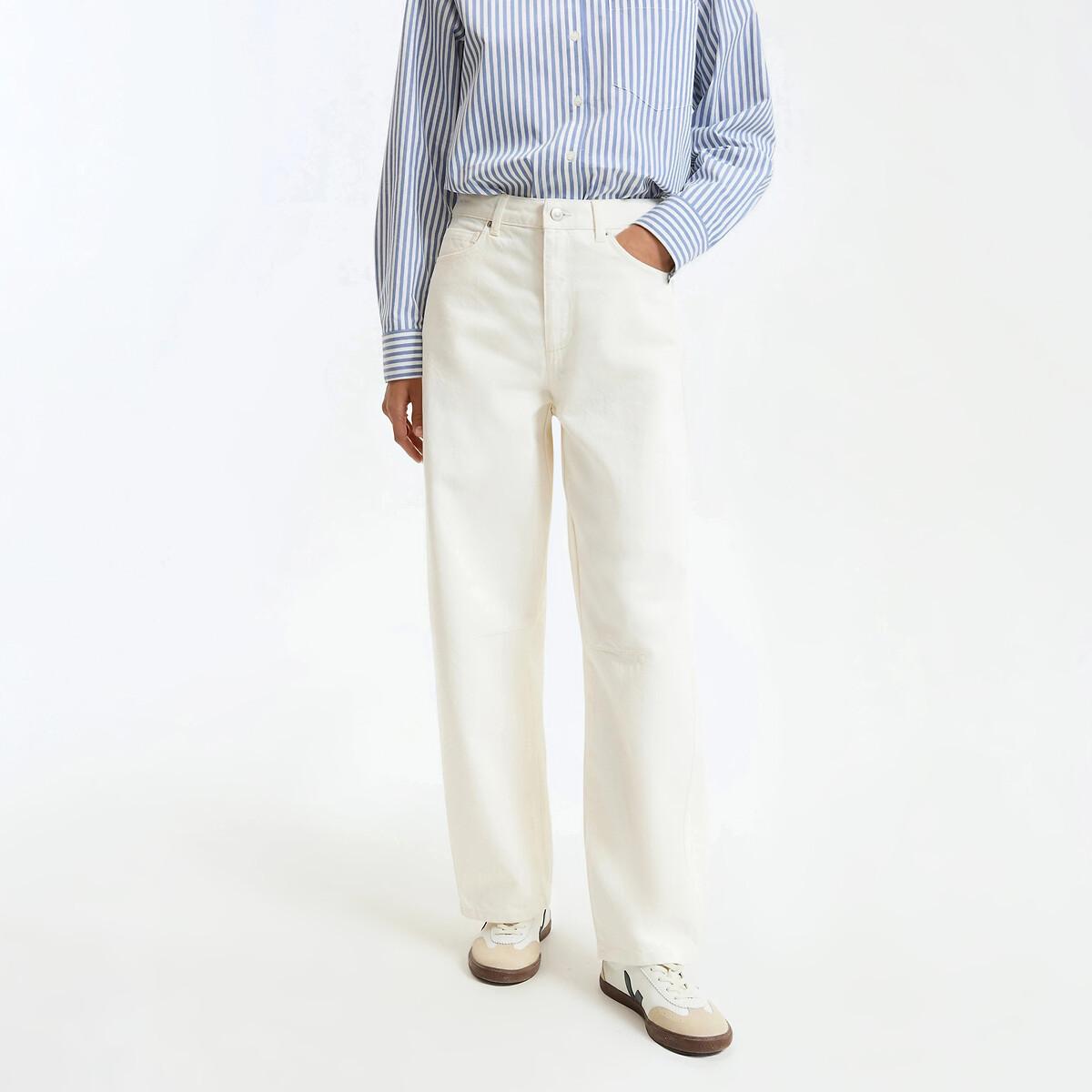Die Barrel Jeans ist auf dem Vormarsch. Sie schmiegt sich an die Hüften an und weitet sich im Kniebereich. Eine weite Jeans, die sich durch ihre Kombination aus Stil und Komfort jeder Körperform anpasst.