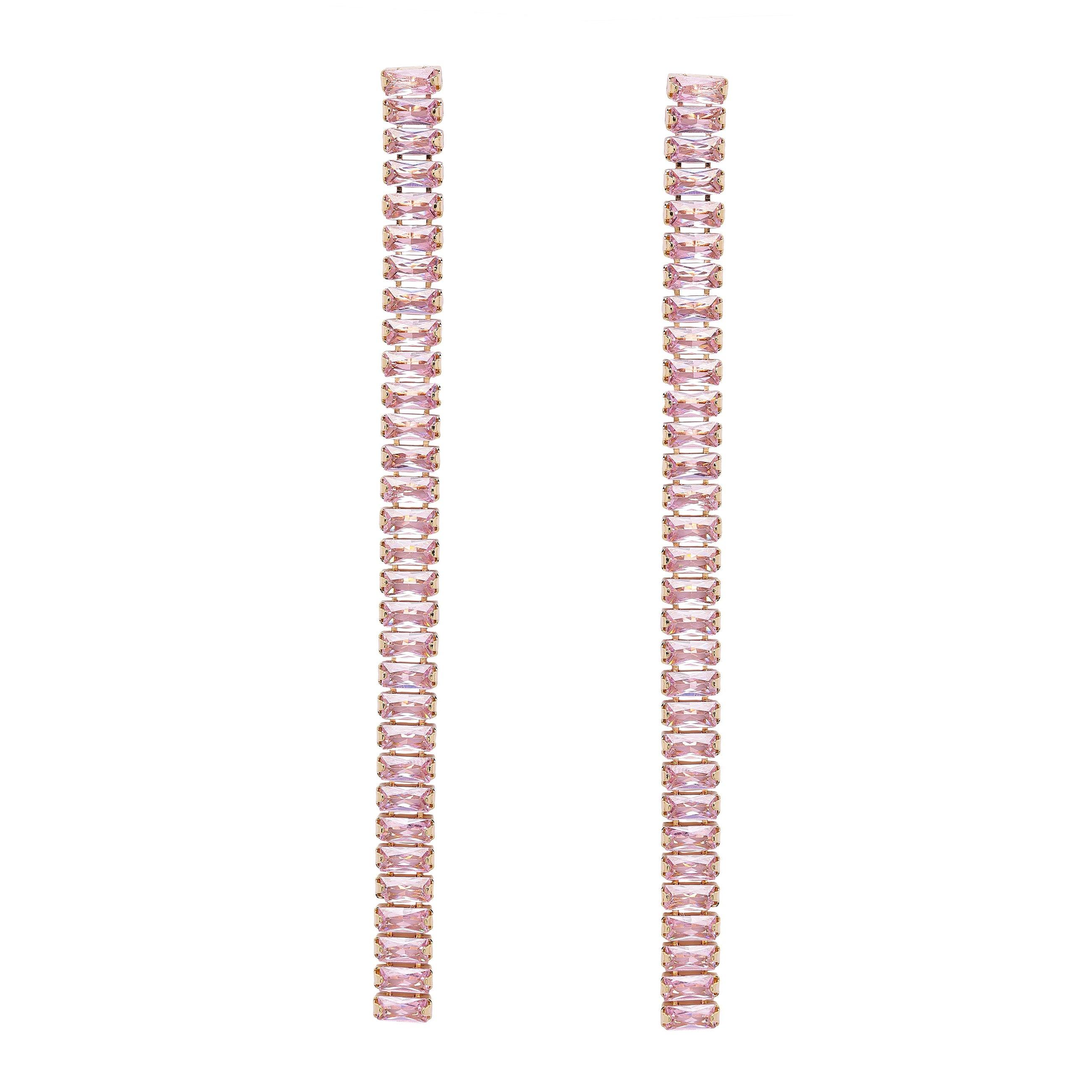 Das längliche, geradlinige Design, besetzt mit einer schillernden Auswahl an rosafarbenen Steinen, sorgt für einen faszinierenden und auffälligen Look. Diese Ohrringe verleihen jedem Outfit einen Hauch von Glamour und Eleganz. Größe: 0,6 cm x 11,5 cm | Beschichtung: Vergoldet | Verschluss: Stecker und Rückseite