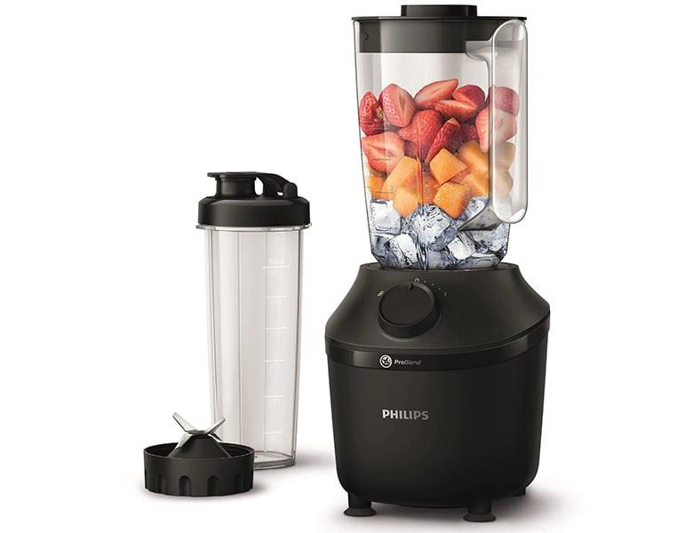 Das Gerät erleichtert das tägliche Mixen und sorgt mit 450 W Leistung und einer hochwertigen Klinge dafür, dass Sie alle Zutaten bequem verarbeiten und sogar Eis zerstossen können. Das Ergebnis ist eine gleichmässige Konsistenz mit minimalem Aufwand in kürzester Zeit. Antivibrationsfüsse Die Saugfüsse am Mixer sorgen für Stabilität und verhindern während des Betriebs Vibrationen. Motor-Thermo-Protection-Sensor Der spezielle Motor-ThermoProtection(MTP)-Sensor vermeidet die Überhitzung des Motors und schützt während der Verwendung vor Überstrom. Eiszerkleinern Das ProBlend-System mit Impulseinstellung zerkleinert Eiswürfel innerhalb von lediglich 45 Sekunden in kleine Teile**. Perfekt für gekühlte Lieblingsdrinks und -smoothies und hervorragend für ganz besondere Desserts. Durchdachtes Design Das Design ist sorgfältig durchdacht und sowohl ergonomisch und robust als auch modern und stilbewusst. So passt es in jede Küche. Die Form des Behälters ist angenehm zu greifen und dank Drehrad ist die Bedienung einfach. Behälter in Familiengrösse: 1,9 Liter Für bis zu 5 Getränke (basierend auf Gläsern mit 200 ml Fassungsvermögen) dank effektiver Kapazität von 1 l NutriU App Die NutriU-App herunterladen und entdecken mit über 200 Ideen für Lieblingsdrinks, - gerichte und -snacks aus Ihrem neuen Mixer. Gesundes Kochen sollte leicht von der Hand gehen und der Familie Lust auf mehr machen. Deshalb finden Sie in der NutriU-App eine Reihe gesunder Alternativen für Ihre Lieblingsgerichte. Von gesunden Schokoladendesserts bis hin zu Hauptgerichten voller Nährstoffe erstellen wir gesunde Rezepte ohne Abstriche beim Geschmack. Geschwindigkeitsstufen Für eine Vielzahl an Getränken und eine schnelle Zubereitung von Zutaten für das Lieblingsessen mit 1 Geschwindigkeitsstufe + Impulseinstellungen zur Auswahl. Für alle Zutaten von Kräutern, Gewürzen und Gemüse bis hin zu Kaffeebohnen und sogar zerkleinertem Eis für einen wohlschmeckenden, gekühlten Smoothie