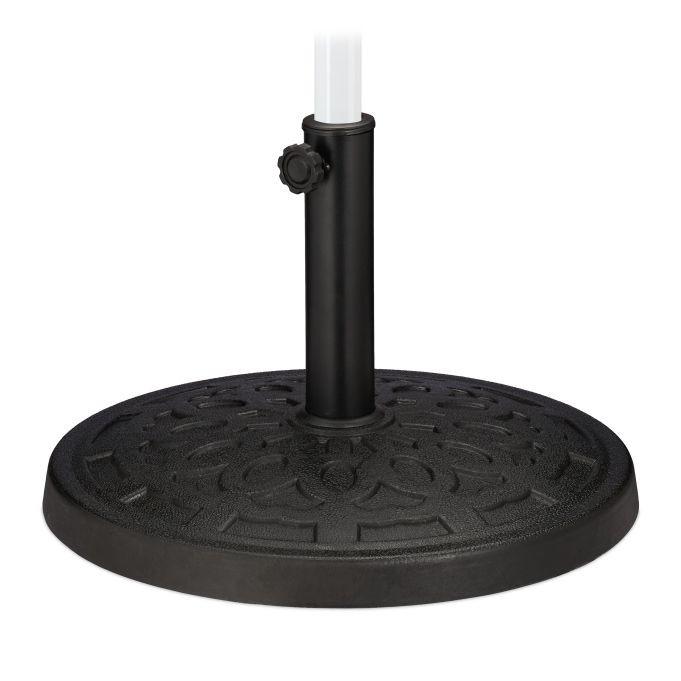 Der schwarze Sonnenschirmständer bietet stabilen und stilvollen Schatten für Ihren Garten, Ihre Terrasse oder Ihren Balkon. Sein schwerer Standfuß sorgt für sicheren Stand und bietet zuverlässigen Sonnenschutz auch bei Wind.