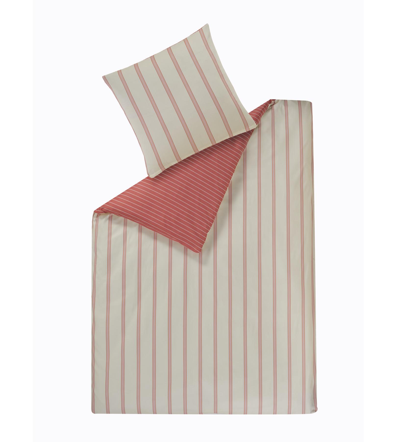 Der Chill Duvetbezug präsentiert sich in einem klassischen Streifendesign, das jedem Schlafzimmer einen zeitlosen und einladenden Look verleiht. Das wendbare Design ermöglicht vielseitiges Styling, wobei eine Seite einen hellen Hintergrund mit roten Streifen und die andere ein unifarbenes Rot mit dezenten Streifen zeigt.
