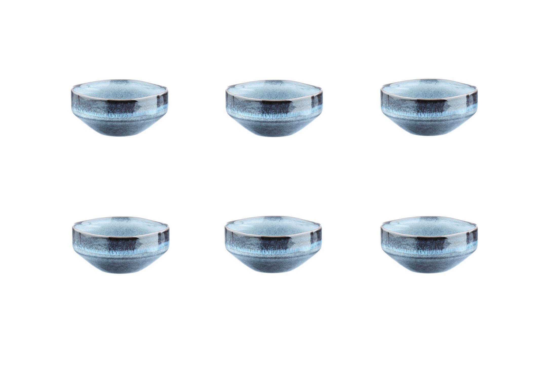 Der Kollektion „Genesis, inspiriert von Reisen zwischen Land und Meer. In seiner SEA-Variante erscheint ein blauer Farbverlauf, der an die Gischt der Wellen erinnert. Seine asymmetrischen Linien und die klaren Schnitte verleihen ihm Charakter und Authentizität.- Enthält: 6 Schalen Ø11 cm