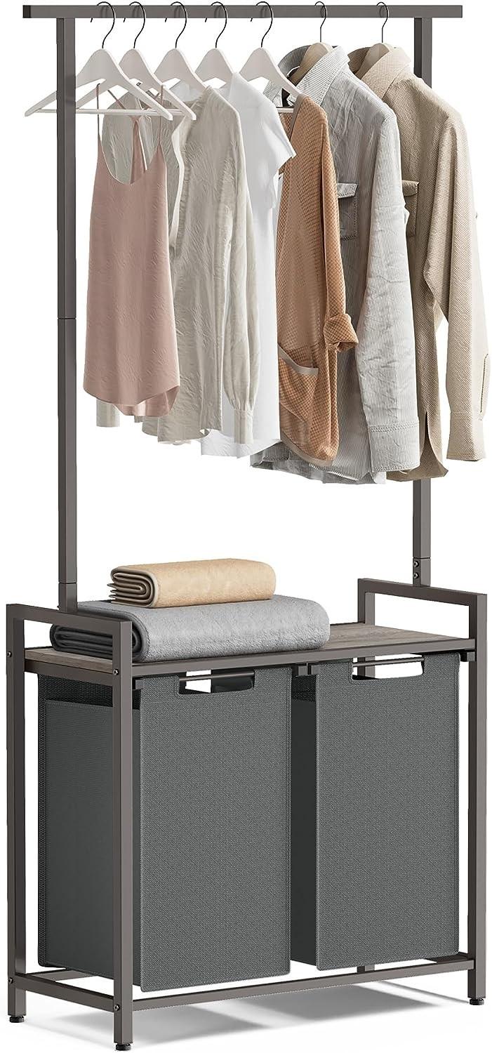 Robust und stabil: Dieser Wäschekorb besteht aus 0,8-Zoll-Stahlrohren und 0,8-Zoll-Spanplatten, sodass das Rack bis zu 200 Pfund tragen kann. Es verfügt außerdem über verstellbare Beine für Stabilität auf leicht unebenen Böden und ein Anti-Kipp-Set für zusätzliche Sicherheit.