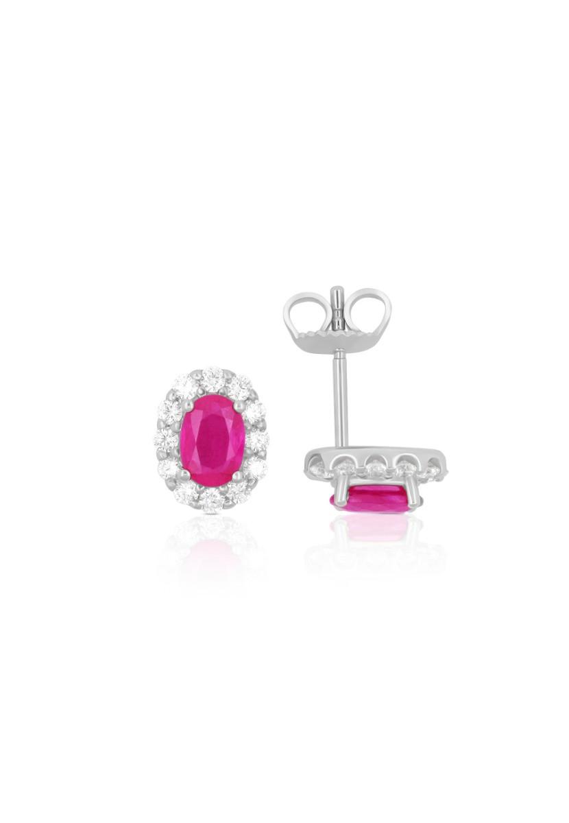MUAU Schmuck, Ohrringe Weissgold 750 Rubin 1.13ct. Brillanten 0.44ct. 10mm