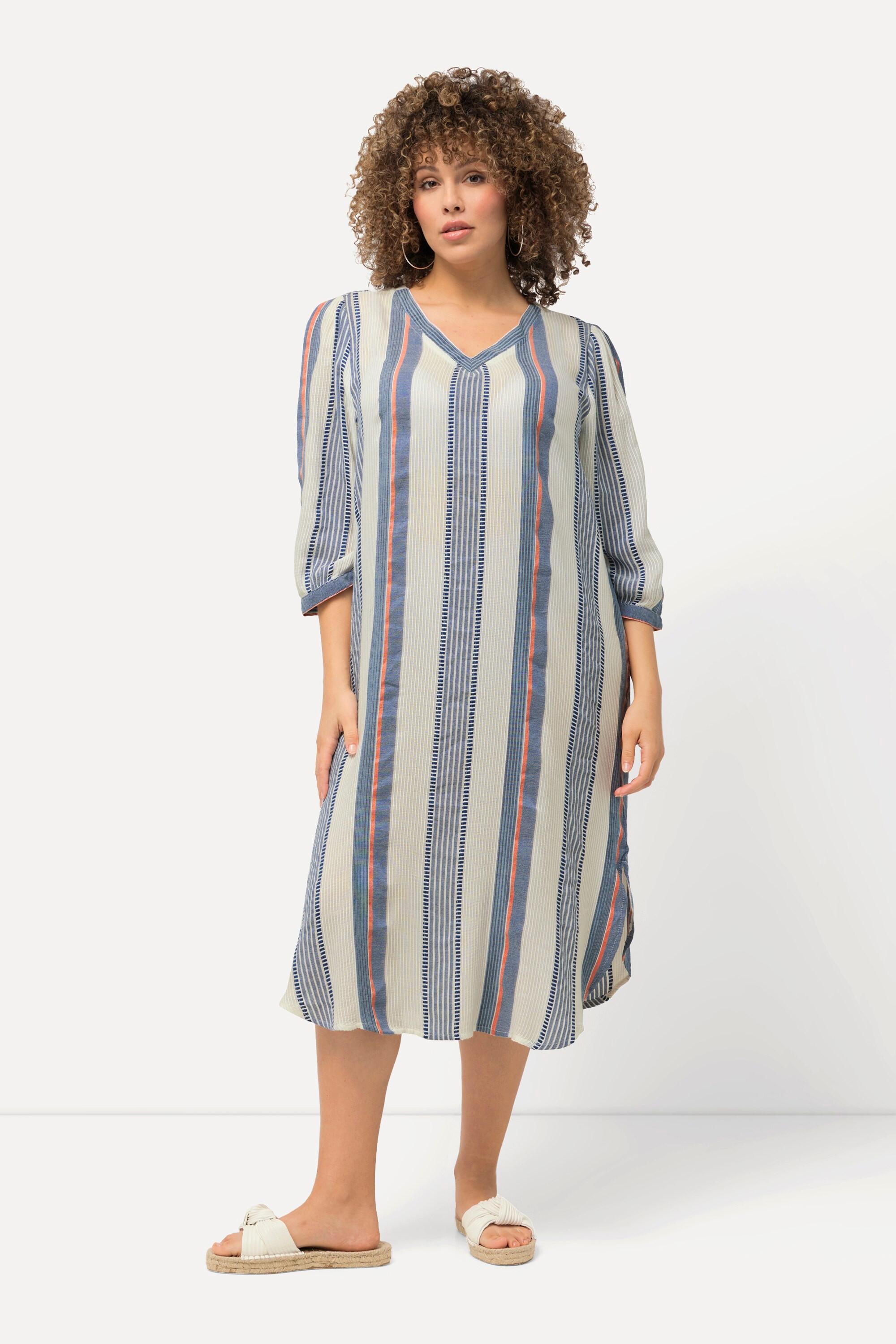 Ulla Popken Gestreifter Oversized Kaftan V-Ausschnitt 3/4-Arm