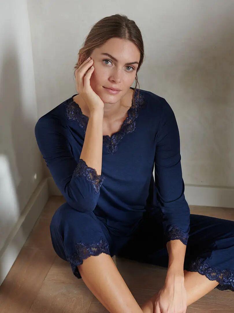 - Feine Spitzeneinsätze an Oberteil und Schlafhose