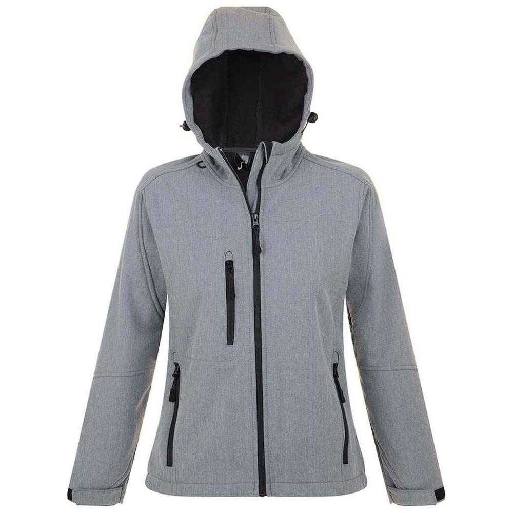 Diese Softshelljacke ist eine vielseitige Oberbekleidungsoption, die für Komfort und Schutz entwickelt wurde. Sie verfügt über einen durchgehenden Reissverschluss vorne und eine Kapuze mit verstellbaren Kordelzügen, die eine Anpassungsfähigkeit an verschiedene Wetterbedingungen bietet. Die Jacke enthält mehrere Reissverschlusstaschen zur sicheren Aufbewahrung von Essentials.