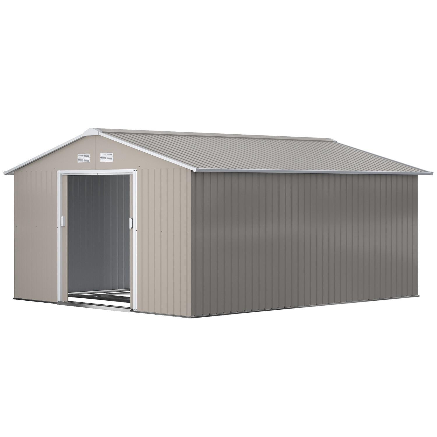 Robustes Gartenhaus aus Metall mit Schiebetüren und Belüftung