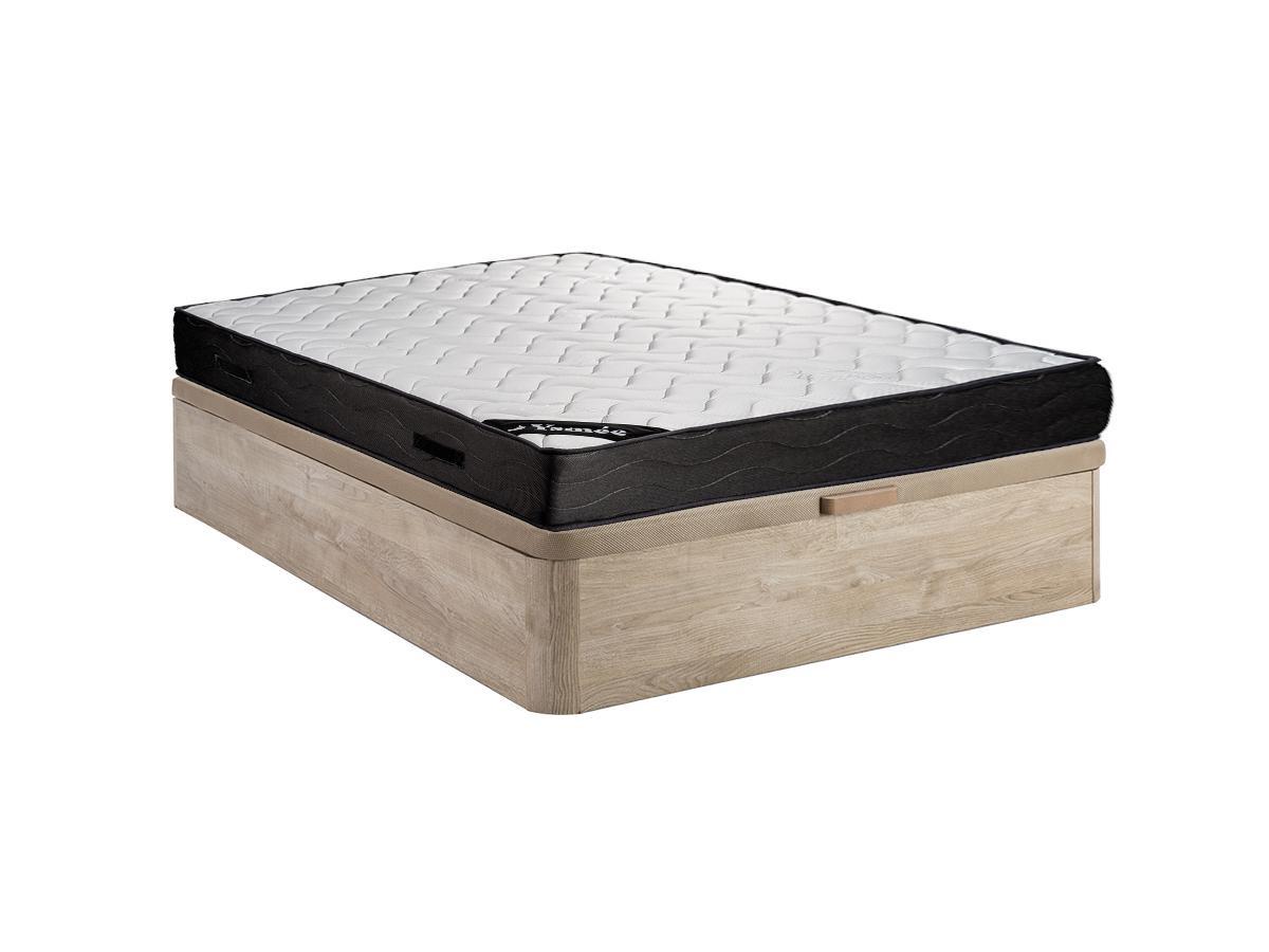Ysmée Set aus Bettgestell mit Bettkasten + Matratze - 160 x 200 cm - 7-Zonen-Taschenfederkern & Memory Schaum - Stärke 24 cm - Holzfarben hell - MERISI von YSMÉE