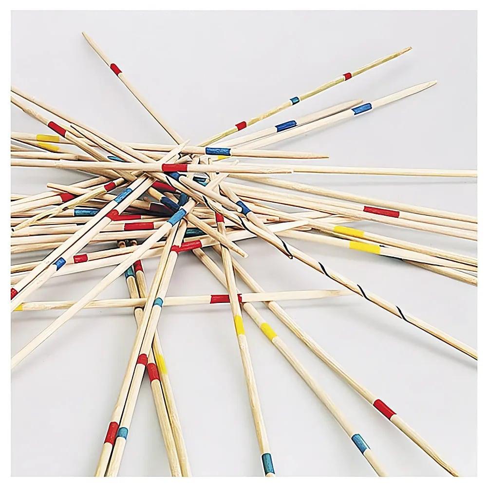 Das Mikado-Spiel Maxi besteht aus 41 sorgfältig gefertigten Holzstäben, die in einem robusten Kunststoffetui geliefert werden. Jeder Stab hat eine Länge von 50 cm und einen Durchmesser von 6 mm, was das Spiel sowohl für Kinder als auch für Erwachsene geeignet macht. Die farbigen Markierungen erleichtern das Spiel und sorgen für zusätzlichen Spielspass.