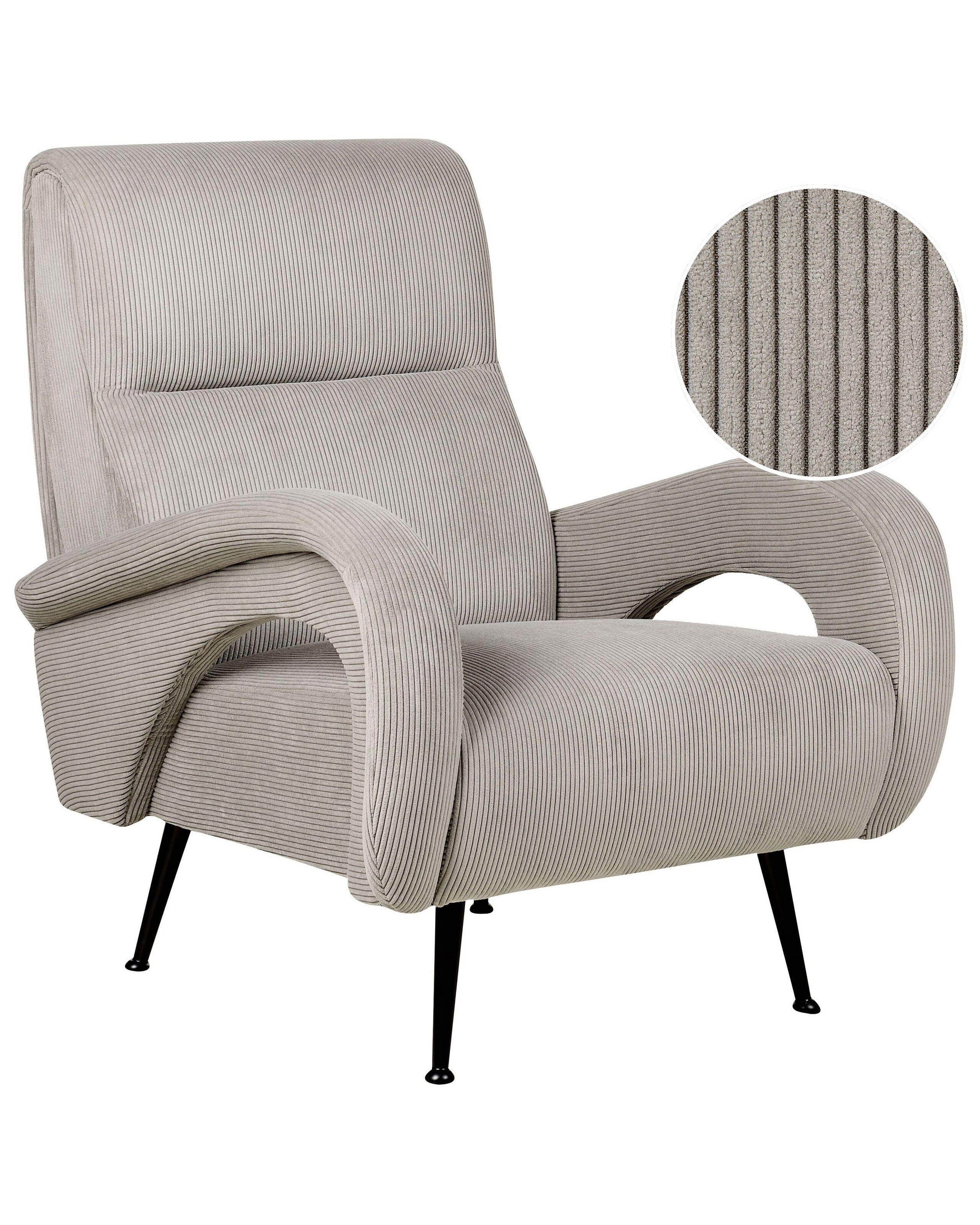 Sessel aus Cord im Retro-Stil. Dieser Sessel mit luxuriöser Cord-Polsterung ist das Glanzstück eines jeden Wohnraums. Seine ausgefallenen Armlehnen versprühen Vintage-Charme und bieten gleichzeitig ein bequemes Sitzen. Die dick gepolsterte, hohe Rückenlehne sorgt für zusätzlichen Halt und lädt zum Entspannen ein. Peppen Sie Ihr Zuhause mit diesem stilvollen und gemütlichen Sessel auf, der Retro-Ästhetik und modernen Komfort miteinander verbindet.