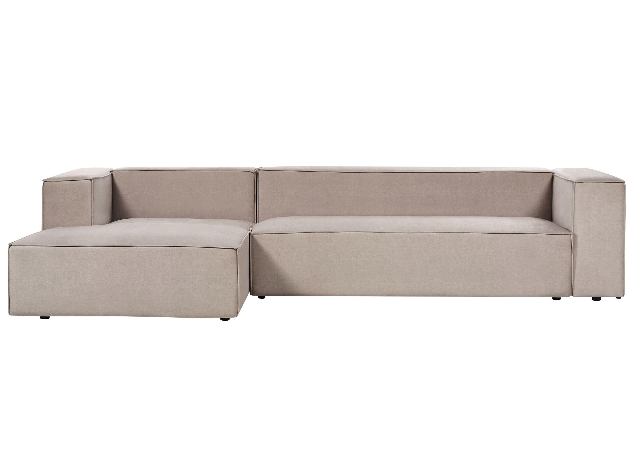 Modernes 3-Sitzer Sofa mit rechtsseitiger Chaiselongue . Dieses Polstersofa erhält dank seiner klaren Linienführung eine zeitlose Ausstrahlung und eignet sich daher besonders für jeden modernen Wohnbereich. Es ist mit einer extra breiten Chaiselongue ausgestattet, die es sehr gemütlich macht und auf der man sich bequem ausstrecken kann. Das Besondere an dem Modell sind seine tiefe, dick gepolsterte Sitzfläche, die breiten Armlehnen und die niedrige Rückenlehne, die den Komfort der Eckcouch zusätzlich steigern und sie perfekt zum Ausruhen machen. Das Samtsofa ist in einer kompakten L-Form gehalten, so eignet es sich für jedes kleine oder mittelgrosse Wohnzimmer.
