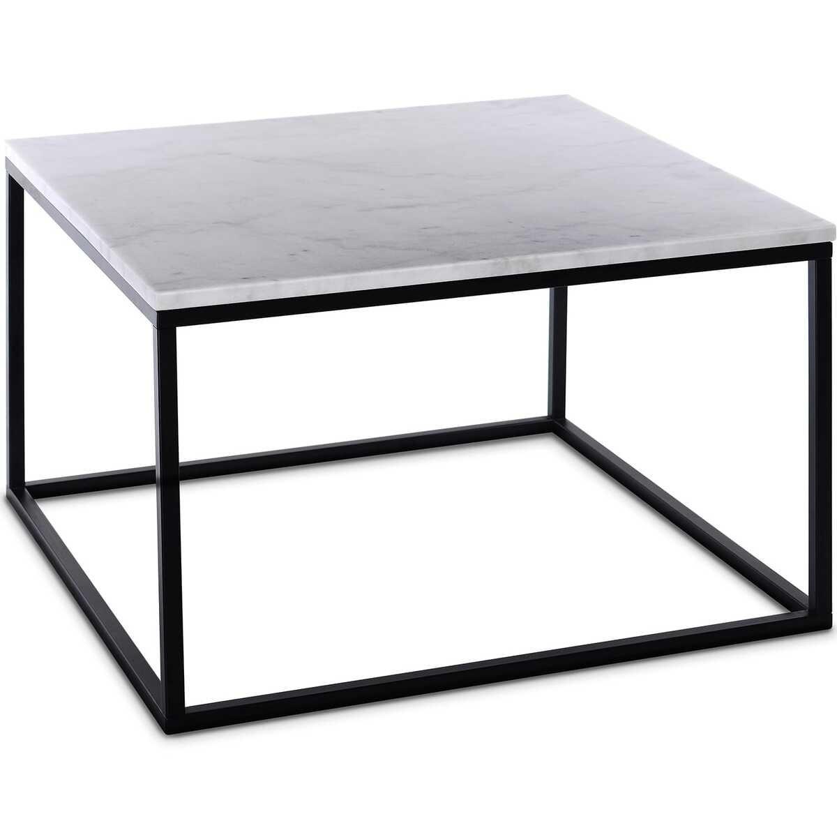 Couchtisch aus Marmor quadratisch, Gestell Metall, Platte Marmor. Plattenstärke 18 mm, gerade Kante, Platte weiss, Gestell aus Metall schwarz, 75x75x48