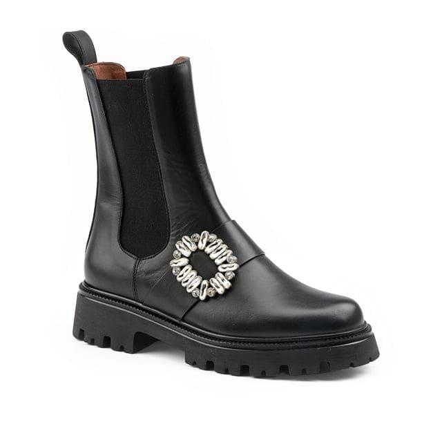 Schauen Sie sich die Konstantin Starke Chelsea Nora Stiefel an, die für Fashionistas auf der Suche nach einzigartigen Designs und zeitlosem Stil entworfen wurden. Diese Stiefel aus schwarzem Leder, mit metallischen Schmuckeinsätzen, bieten einen schicken und eleganten Look für Abende, Bürobesuche oder den Alltag. Ihre Lederober- und -oberteile sowie ihr Lederfutter garantieren optimalen Komfort und bewahren dabei einen raffinierten Look. Synthetische Sohlen sorgen für Haltbarkeit und Verschleißfestigkeit. Die Nora Stiefeletten sind so konzipiert, dass sie dank ihrer elastischen Seitenverkleidungen leicht angezogen werden können, und ein praktischer Fersenknopf macht es einfach zu passen. Ihre polierte Oberfläche und robuste Konstruktion machen sie perfekt für Urbaniten und Modeliebhaber auf der Suche nach einem langlebigen und stilvollen Stil.