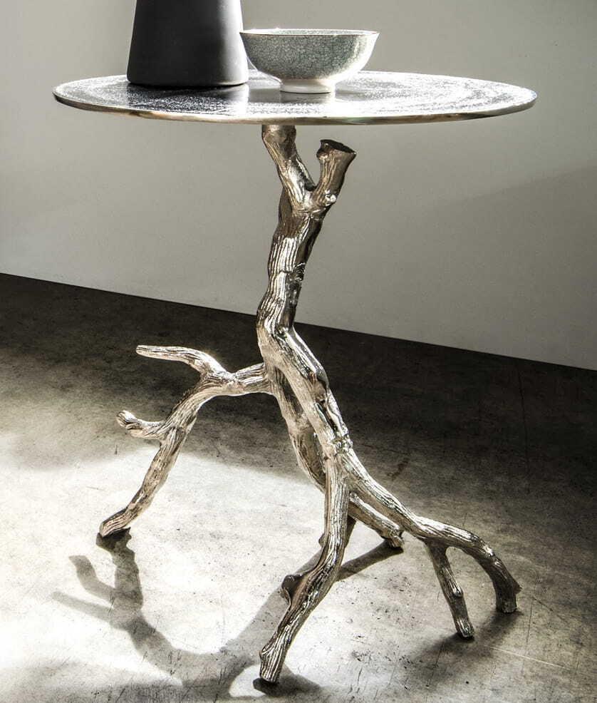 Beistelltisch Branch silber rund aus Aluminium natur vernickelt. Ø ca. 42cm, 52cm hoch