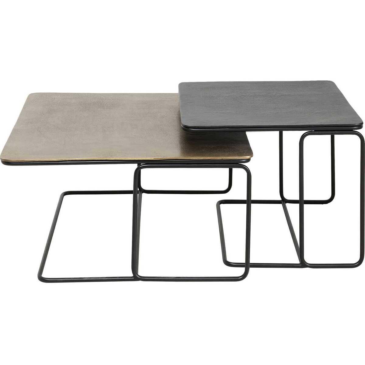 Funktional und edel mit Design-Faktor: Was dieses Set an Couchtischen so besonders macht, ist definitiv ihre besonders hochwertige Verarbeitung. Dieses Set ist eine Investition, die sich auf lange Sicht absolut auszahlt. Die Gestelle sind einzigartig und zudem sind die Tische handgearbeitete Einzelstücke. Besondern praktisch ist, dass sie sich untereinander schieben lassen oder auch einzeln genutzt werden können. Beistelltische und ein edles Designobjekt in einem, das kann nur überzeugen! Für Ihr Wohnzimmer, als Nachttische oder den Besprechungsraum das perfekte Wohnaccessoire.Moderner, eleganter Couchtisch im 2er Set aus MetallErstklassige Design mit aussergewöhnlichen Gestellen, die sich untereinander schieben lassenFlexibel und mobil in der ganzen Wohnung, ob einzeln oder im SetDie Bronze- und Messing-Beschichtung unterstreicht die Hochwertigkeit und LanglebigkeitCouchtische werden fertig montiert geliefertProduktinformationGestell: Stahl lackiert, Nutzfläche: Aluminium messing beschichtet, Aluminium Bronze beschichtet, 20 mm Plattenstärke, montiert, 70X70X34 CM 52X52X41 CM