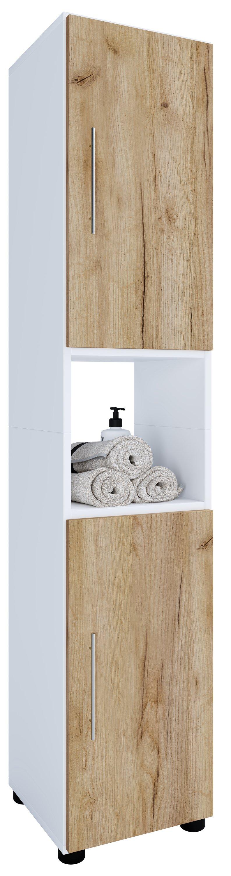 VCM, Holz Badmöbel Stand Badregal Badezimmer Badschrank Hochschrank Flandu