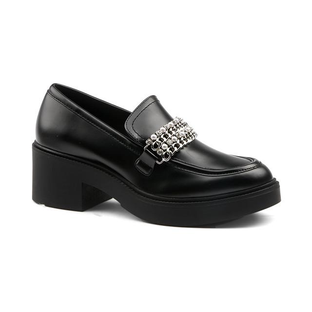 Diese Loafer vereinen Raffinesse und Komfort. Entworfen für formelle Anlässe, sind sie ideal für Partys, Veranstaltungen und sogar für das Büro. Diese klassischen Loafer sind aus Synthetik und Textil gefertigt und bieten ein bequemes Futter und eine robuste Synthetiksohle. Die synthetische Innensohle sorgt für optimalen Grip und Stabilität. Die Absätze messen 55 mm, was dem Schuh einen Hauch von Stil verleiht. Ein metallisches Detail, das sich über den Vorderfuss zieht, verleiht dem klassischen Design einen Hauch von Raffinesse.