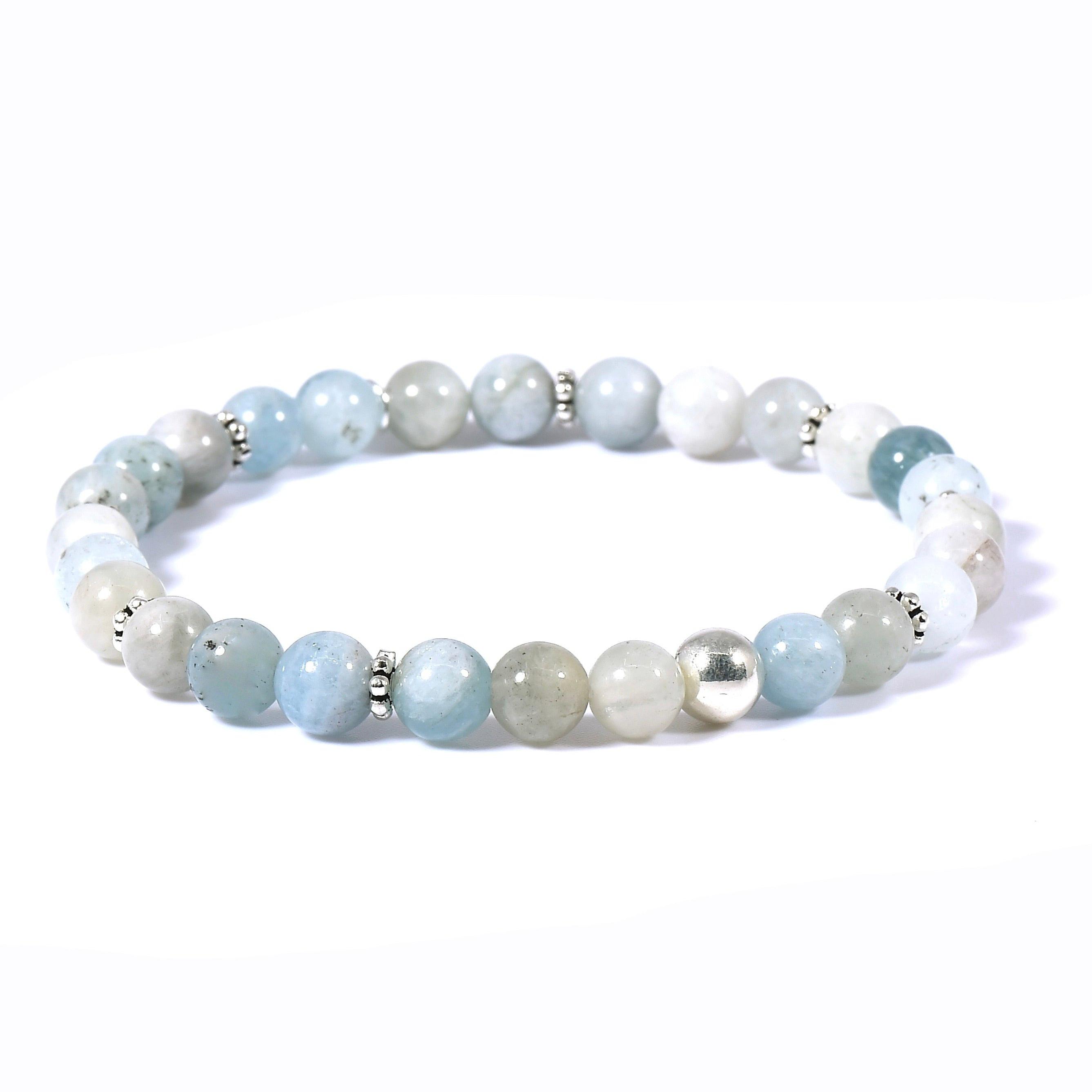 Dieses edle Damenarmband aus 6mm handverlesenen Morganit Edelsteinen wird durch feine Elemente aus 925 Sterling Silber vollendet. Das sanfte Farbspiel von mintblauen bis hin zu offwhite Tönen verleiht dem Armband eine aussergewöhnlich zarte, fast himmlische Ausstrahlung.