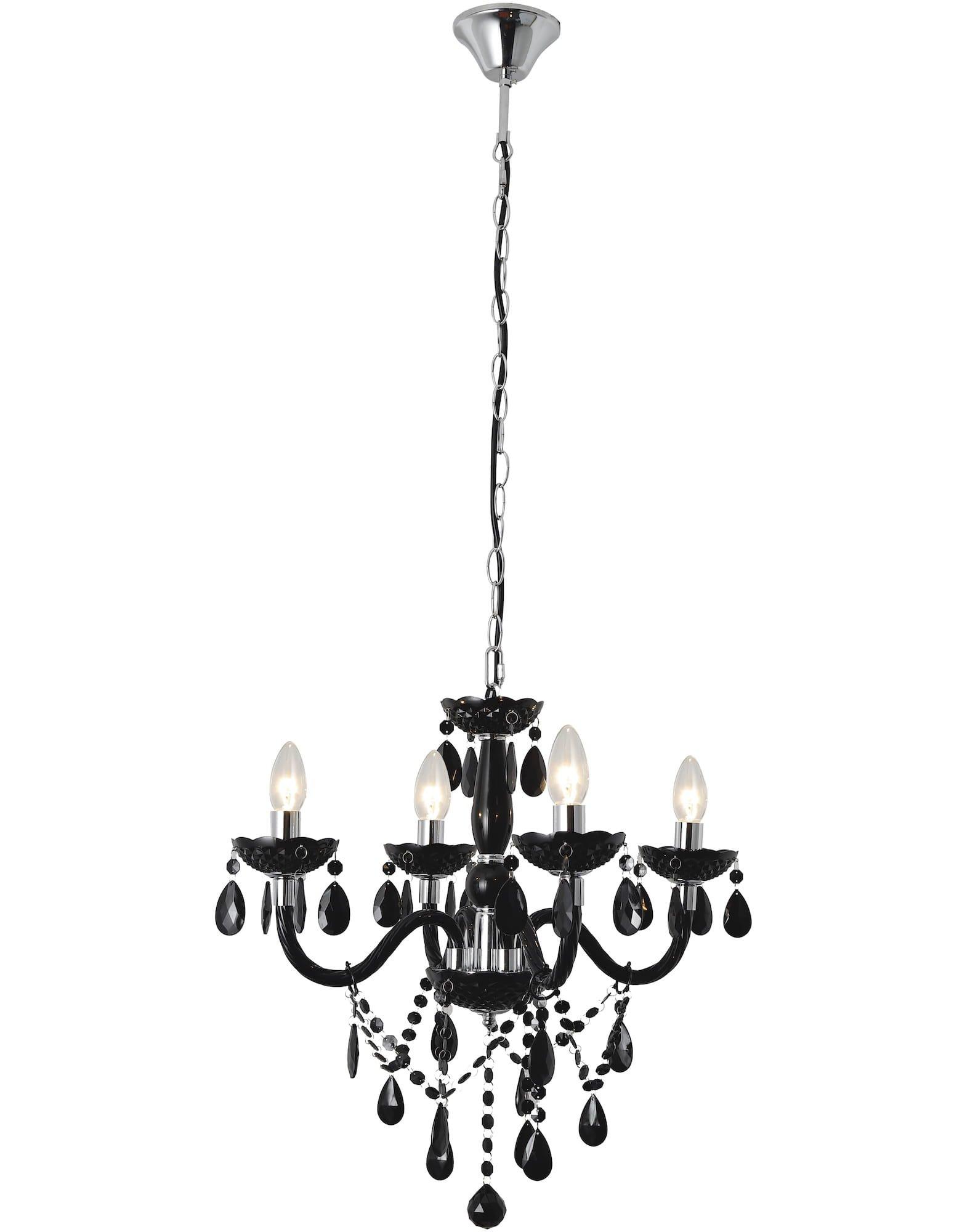 Behang aus schwarzem Acryl mit geschliffener Oberfläche, Aufhängung Metall, Durchmesser ca. 52 cm, 4x E14, 60 W, Leuchtmittel nicht im Lieferumfang enthalten