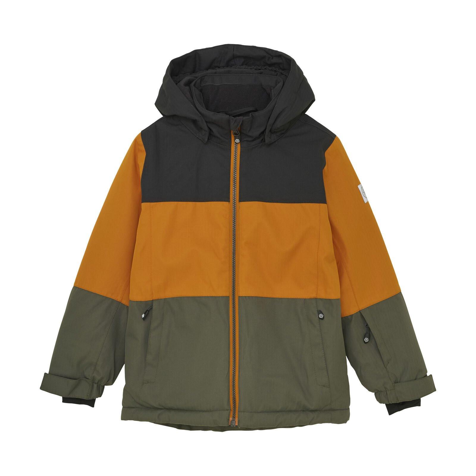 Warme, schicke Skijacke in Blockfarben für Ihr Kind aus strapazierfähigem Material. Das Material ist atmungsaktiv, wind- und wasserdicht, so dass Ihr Kind bei Regen, Schnee und Wind draußen bleiben kann, ohne kalt und nass zu werden. Geprüfte Abriebfestigkeit von 60.000 Reibungen, Wassersäulendruck von 10.000 mm und Atmungsaktivität von 8.000 g. Die Jacke lässt sich mit einem hochwertigen Reißverschluss an der Vorderseite schließen. Kinnschützer sorgen dafür, dass sich der Reißverschluss unter dem Kinn weich anfühlt. Die Jacke hat eine abnehmbare Kapuze und Außentaschen mit Reißverschluss. Reflektierende Details auf der Rückseite der Jacke und am Ärmel. Weitere praktische Features wie Innenbündchen mit Platz für den Daumen und verstellbare Außenbündchen, die sich fest verschließen lassen. Tasche für Skipässe am linken Ärmel und Innenjacke mit Druckknöpfen an der Unterseite. Innen ist ein Namensschild angebracht. Beschichtet mit BIONIC FINISH® ECO. Zertifiziert nach GRS - Hergestellt aus 53% recyceltem Material CERES-0366