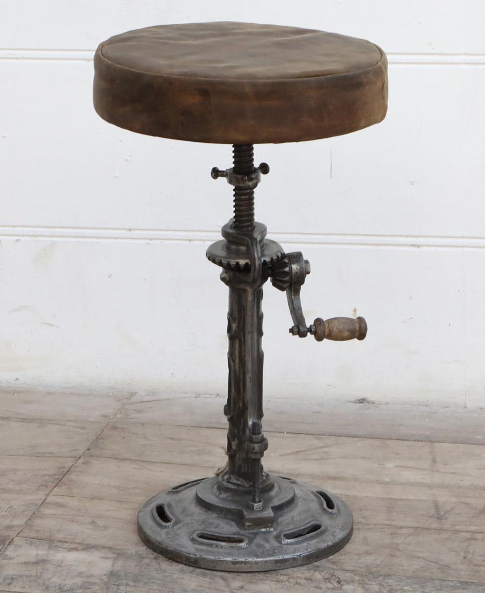Sitzhocker Clint mit Bezug aus echtem Wildleder braun, Gestell aus Eisen vintagefarbig, höhenverstellbar, rund, Ø ca. 32, Höhe ca. 57 cm