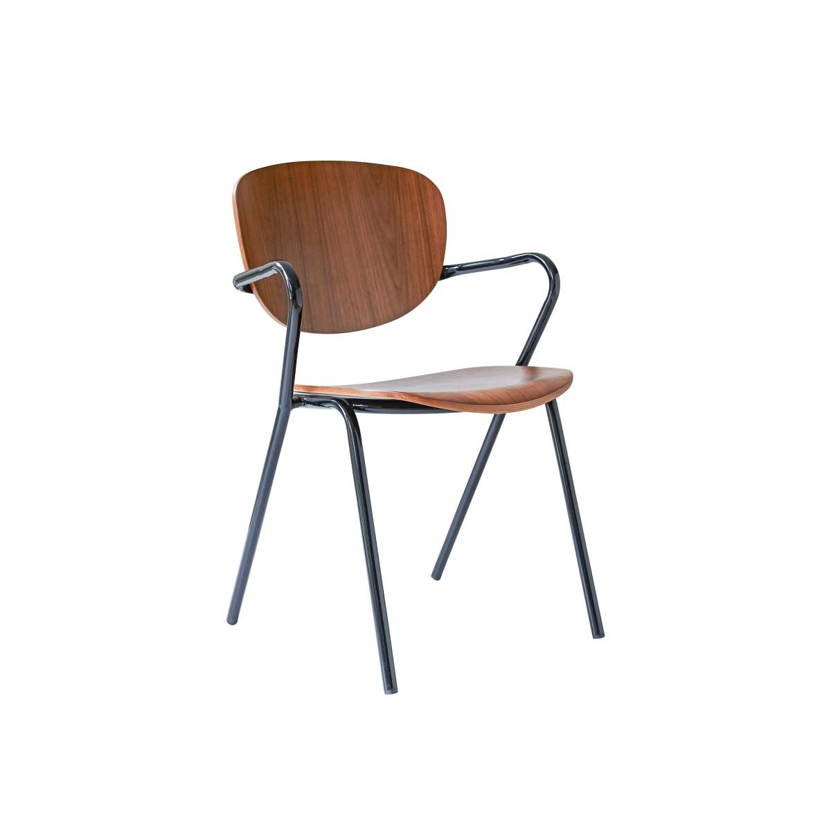 Stuhl aus schwarzem Metall und Walnussbaum. Sie werden die leichte Struktur und die schönen Proportionen lieben! Er sieht nicht nur toll aus, sondern ist dazu auch noch bequem.