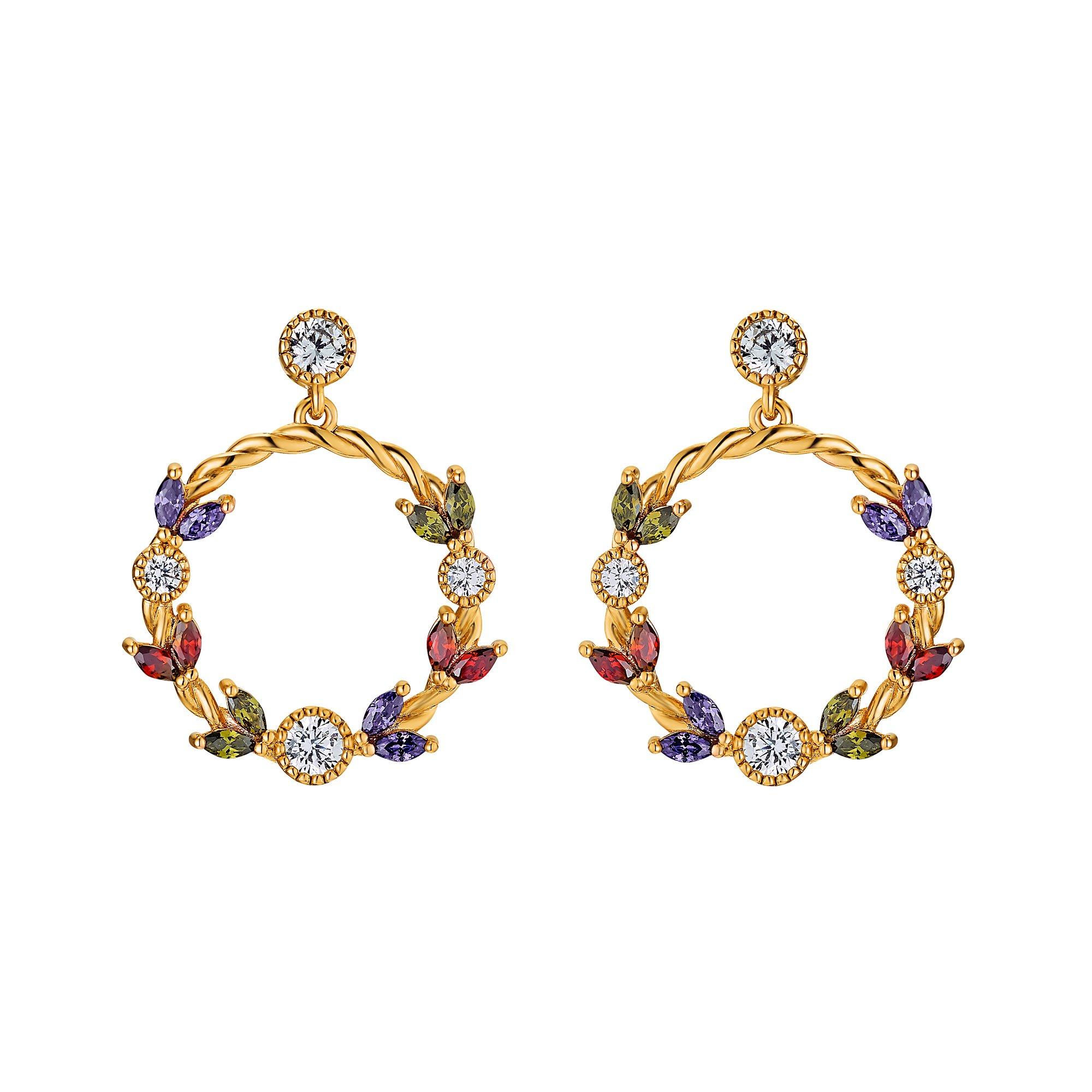 Für Großstadtelfen, Hippiegirls und Fans des Bohèmian Lifestyles: Diese Ohrringe leuchten wie ein Regenbogen und versprühen ungetrübte Lebensfreude. Blätterförmig angeordnete Farbsteine sorgen für gute Laune und erinnern an den römischen Siegeskranz. Gemacht im angesagten Kordeldesign. Ein Stück Leichtigkeit und Fröhlichkeit bereiten ist ganz leicht: Einfach Ohrschmuck auswählen und in der dazu gelieferten Geschenkverpackung verschenken.