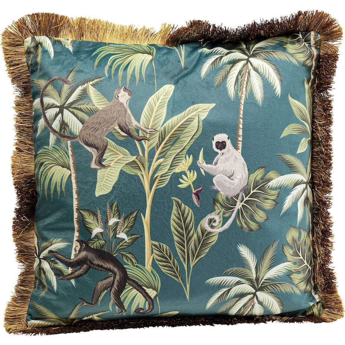 Prächtiges Kissen für Bett, Sofa und Sessel mit nostalgischem Glamour und einer Affenbande, die munter zwischen Bananenstaude und Palmblättern turnt. Leicht zu kombinieren mit unifarbenen Kissen und weiteren Motiven des aktuellen Jungle Looks.Quadratisches Wurfkissen mit exotischem Print auf leicht schimmerndem Kissenbezug und FransenkanteAffentheater im Dschungel im Stil historischer Tapesserien in den Farben Petrol, Grün und GoldgelbVerleiht jedem Sofa als Zierkissen mehr Style und GemütlichkeitDas Kissen im Urwaldgewand verträgt sich gut mit allen neutralen Farben und setzt einen harmonischen FarbakzentPraktisch: Das Deko-Kissen hat einen Reissverschluss, der Bezug aus Kunstfaser kann von Hand gewaschen werden, Füllung inklusiveProduktinformation Bezug: Polyester, Füllung: Polyester, handgearbeitet, jedes Stück ein Unikat, Handwäsche, mit Reissverschluss