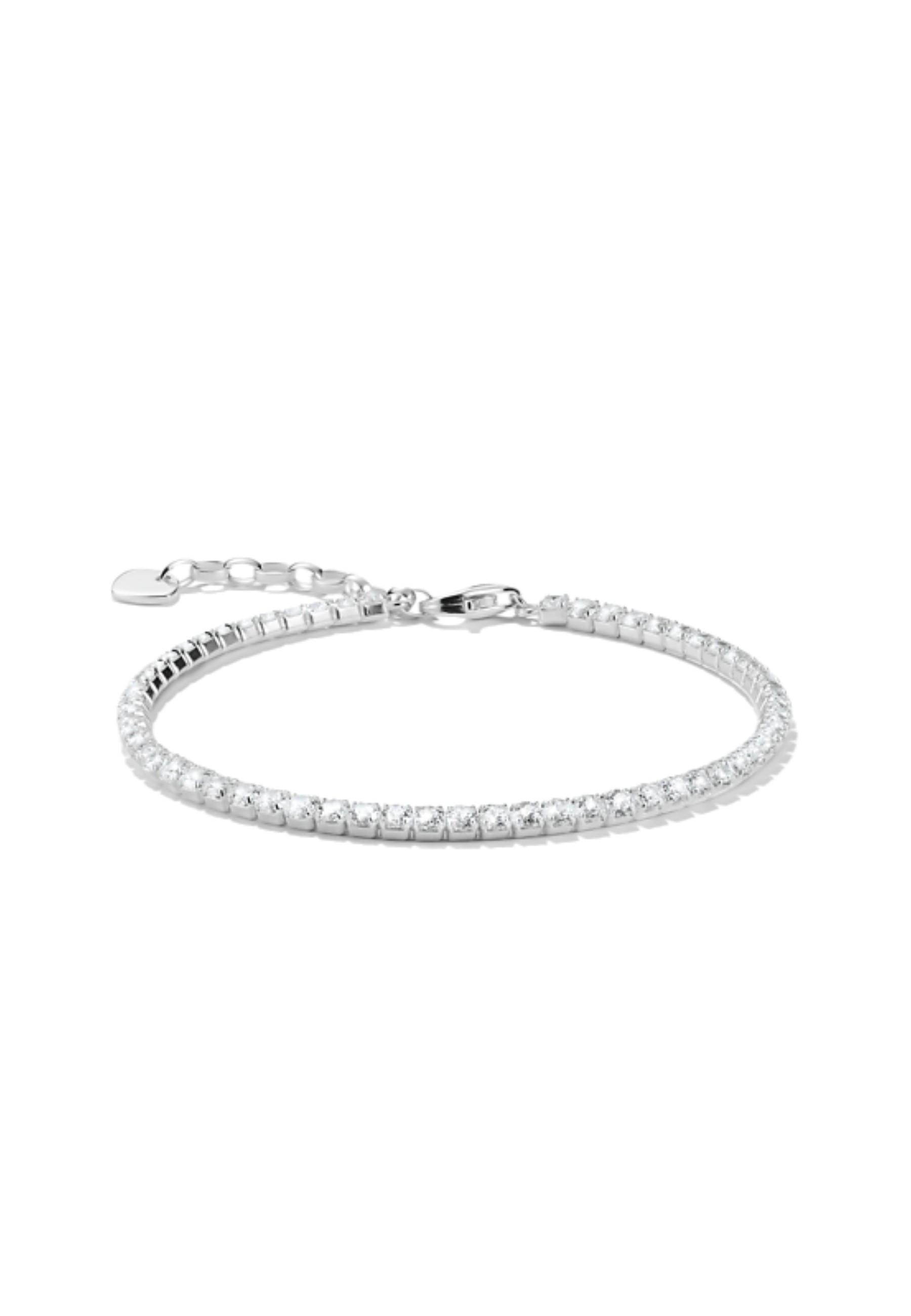 Ein elegantes Silberarmband mit sorgfältig gefassten weißen Zirkonia-Steinen. Das Sterlingsilber bildet eine langlebige, hochwertige Basis, während die weißen Zirkonia das brillante Funkeln und die feurige Ausstrahlung von Diamanten zu einem erschwinglichen Preis bieten. Dieses klassische Design ist vielseitig genug für den Alltag und dennoch raffiniert genug für Abendgarderobe, was es zu einer zeitlosen Ergänzung jeder Schmuckkollektion macht. Das Armband ist in ONE SIZE erhältlich und passt den meisten Handgelenken.