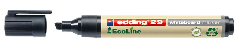 ECOLINE 29 - Boardmarker Der edding 29 whiteboardmarker mit Keilspitze ist ideal für das Schreiben auf Whiteboards und durch seine Cap-Off-Zeit auch nach offener Lagerung noch einsatzfähig. Durch die Verwendung von überwiegend recyceltem post-consumer Material ist er besonders umweltfreundlich. Nachhaltig, da Kunststoffteile insgesamt mindestens zu 90% aus recyceltem Material (83% post-consumer) Ideal zum Schreiben und Markieren auf Whiteboards Trocken abwischbar von fast allen geschlossenen Oberflächen, z.B. Whiteboards Cap-Off-Zeit: Whiteboard Marker ist bis zu einigen Tagen offen lagerfähig Nachfüllbar mit edding BTK 25 und edding BT 30 refill service Filterfasern aus recyceltem Material Ersatzspitzen für den Whiteboardmarker erhältlich Abfallreduzierung durch Nachfüllbarkeit