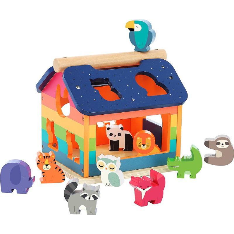 Welche Form passt durch welches Loch? Das regenbogenfarbene Haus hilft euren Kleinen dabei, Formen, Tiere und Farben spielerisch zu lernen. Das Sortierpuzzle wurden von dem Illustrator Andy Westface gestaltet. Grösse: 22.5x23x20.5 cm, aus Holz, ab 2 Jahre, 10 Teile