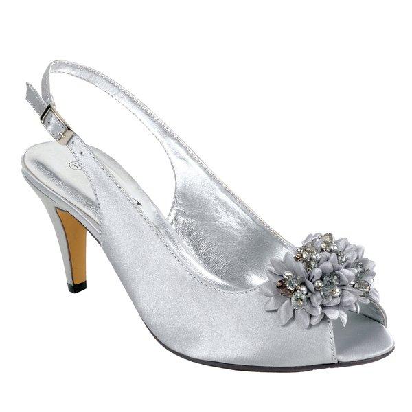 Diese eleganten Slingback-Pumps zeichnen sich durch ein raffiniertes Design aus, perfekt für besondere Anlässe. Der offene Zehenbereich wird durch eine dekorative Blumenverzierung auf dem Vorderblatt ergänzt, die mit funkelnden Details versehen ist. Ein verstellbarer Riemen sorgt für einen sicheren und bequemen Sitz.